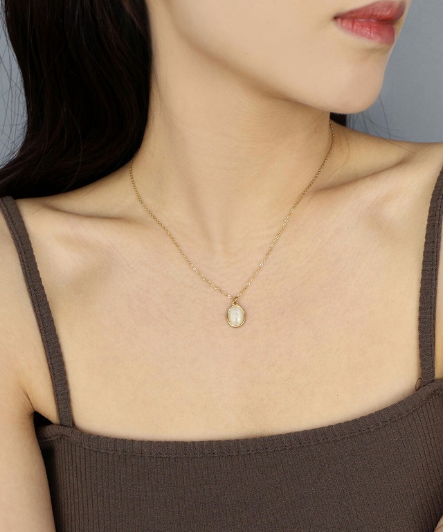 【SELECT】サージカルステンレス 316L オーバル ストーン ペンダントネックレス 金属アレルギー対応
