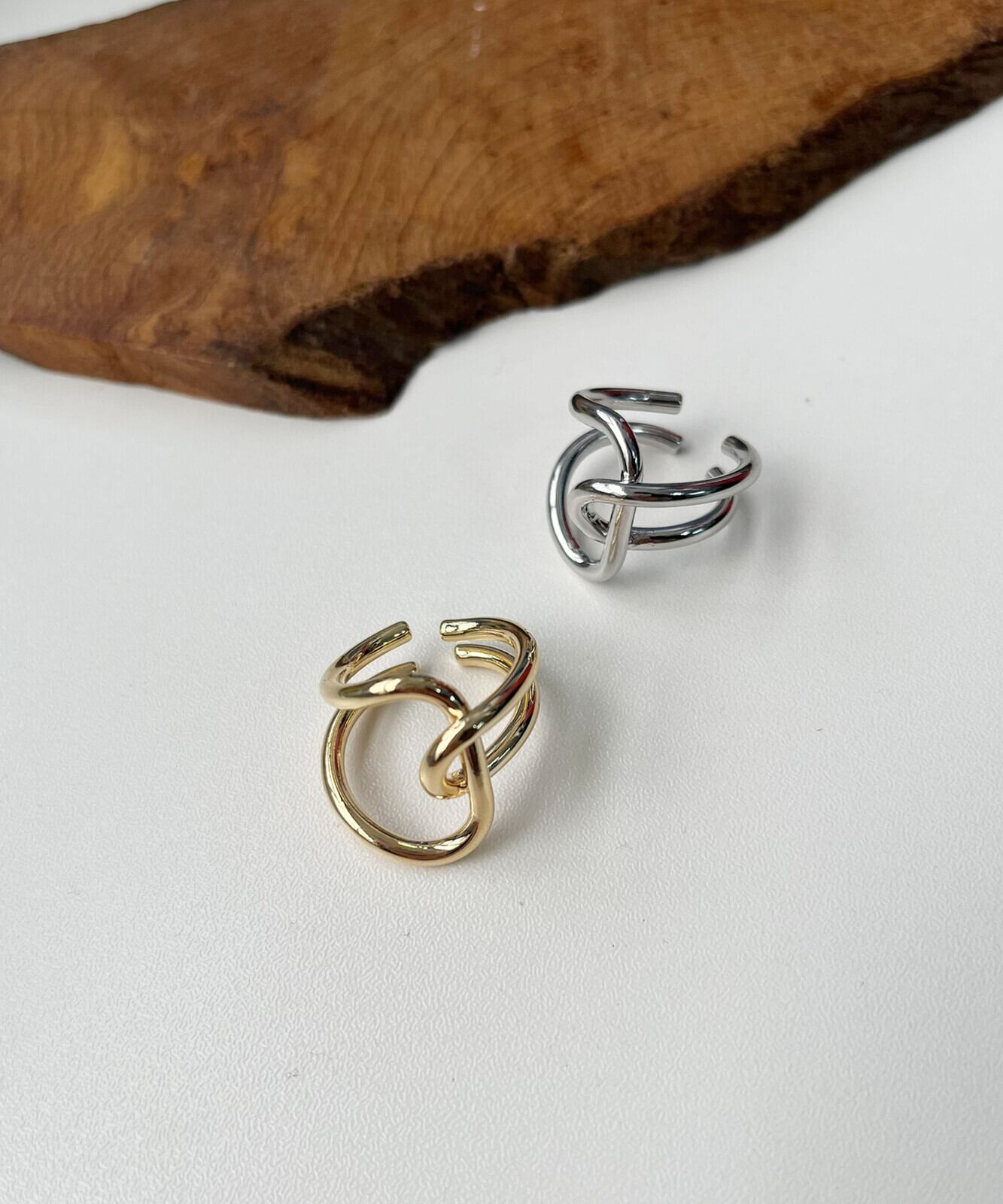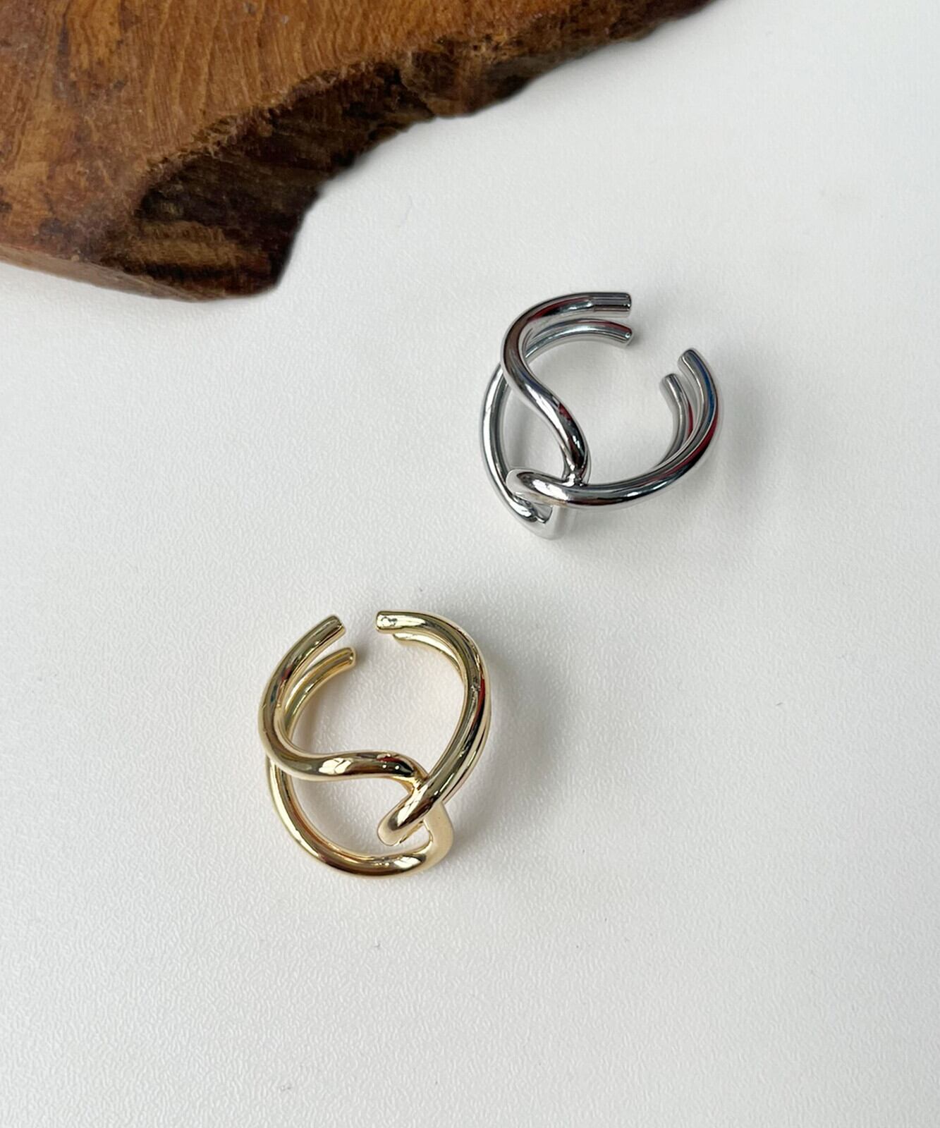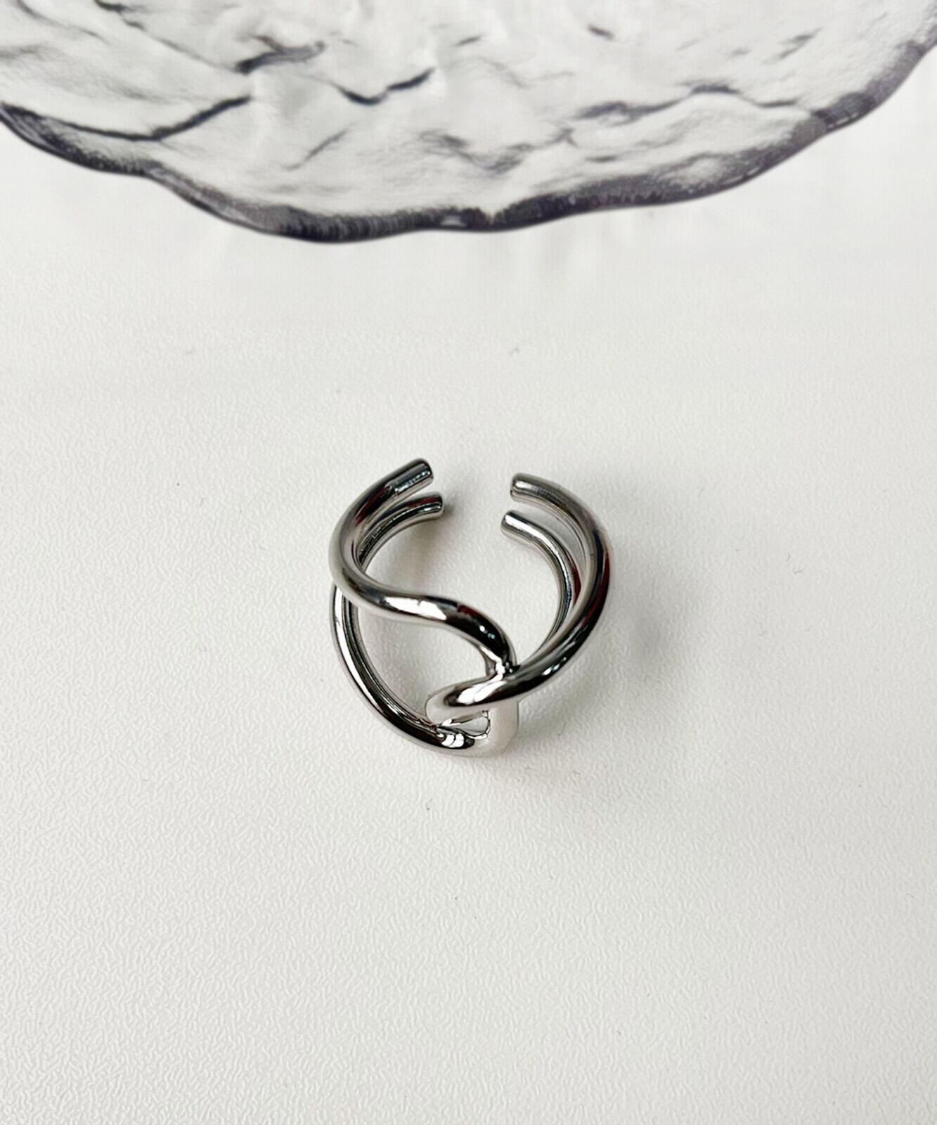 【SELECT】メタルアシンメトリー クロス ワイド リング
