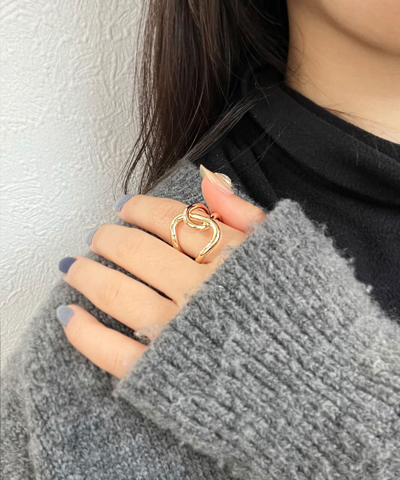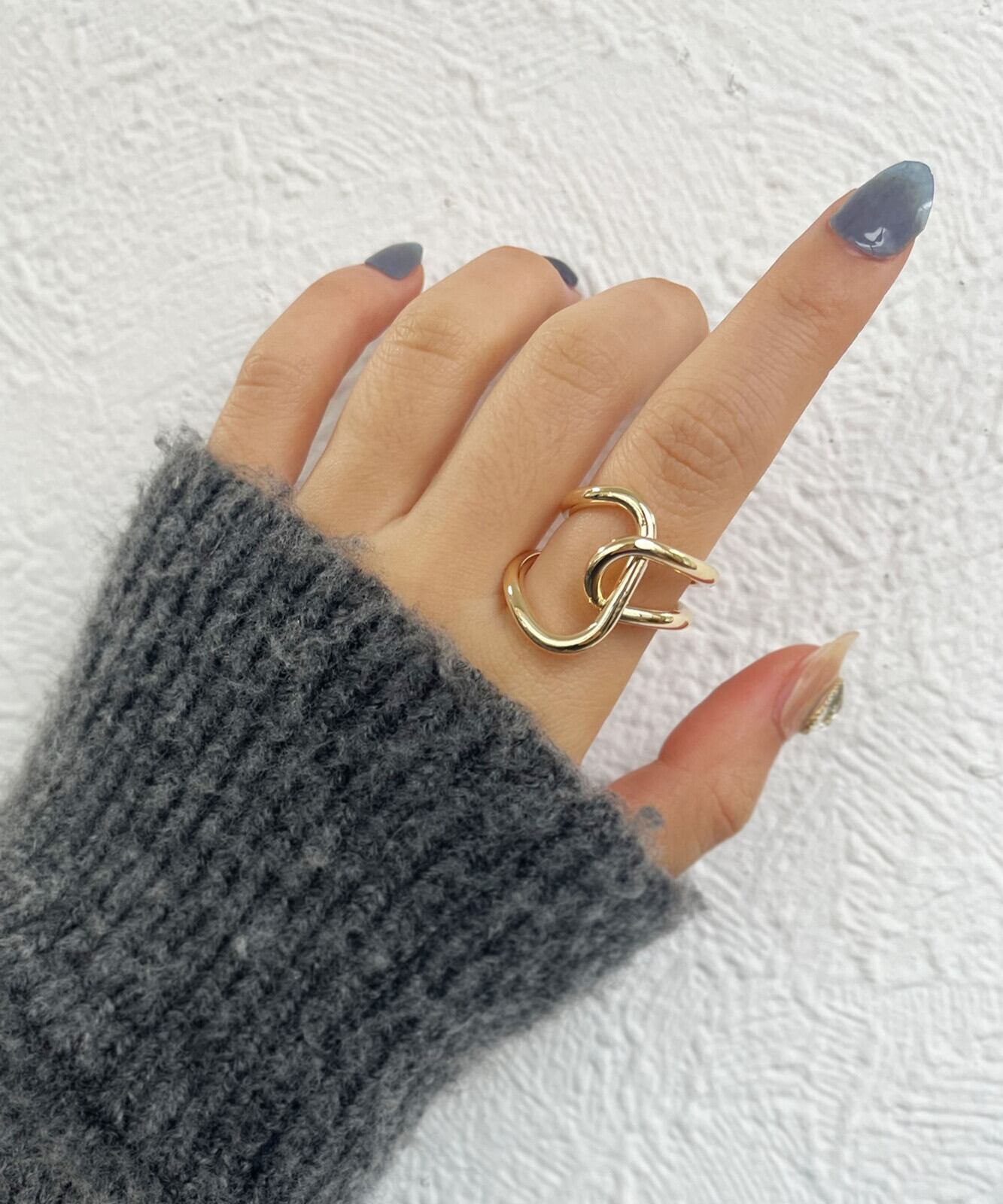大胆に描かれたアシンメトリーなツイストラインが、ひねりを効かせたデザインリングです♪緩やかなカーブシルエットが、女性らしいニュアンスのある仕上がりに。一点投入で抜け感のあるお洒落な手元を演出します。ボリューミーでワイドな幅感が、指先の華奢見せ効果も◎お手持ちのリングとの重ね付けはもちろん!ひとつでも確かな存在感を放ち、指先に絶妙なアクセントを与えてくれるアイテムです。