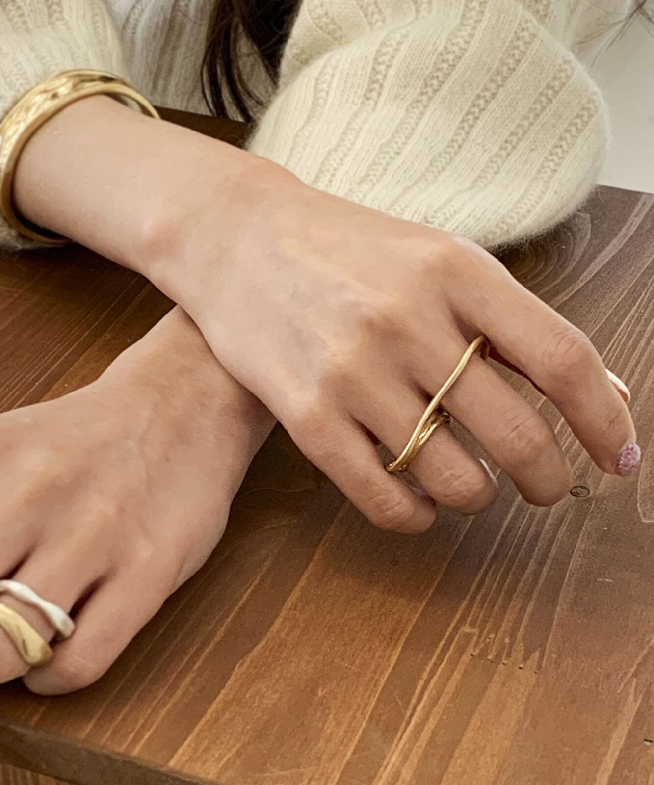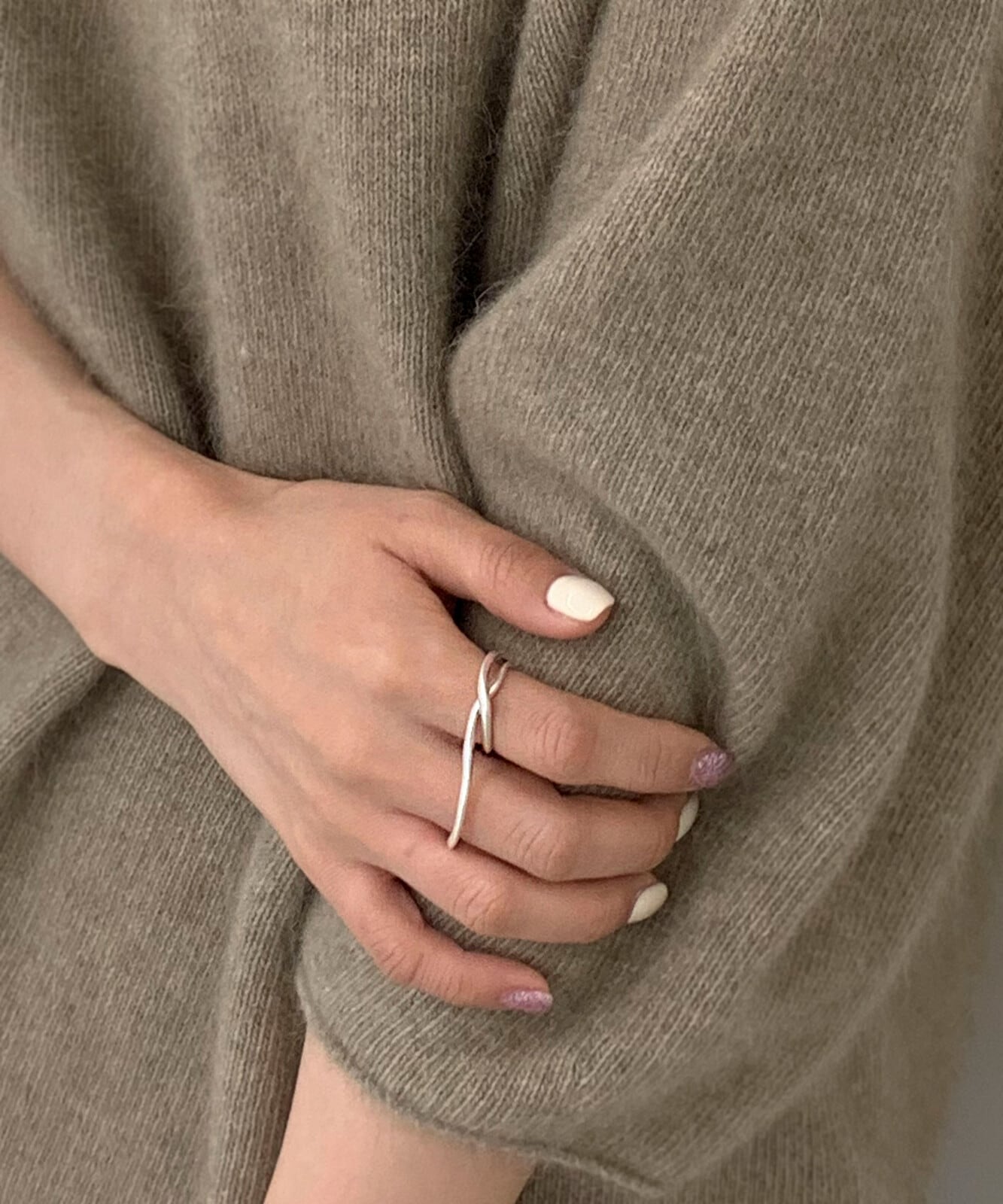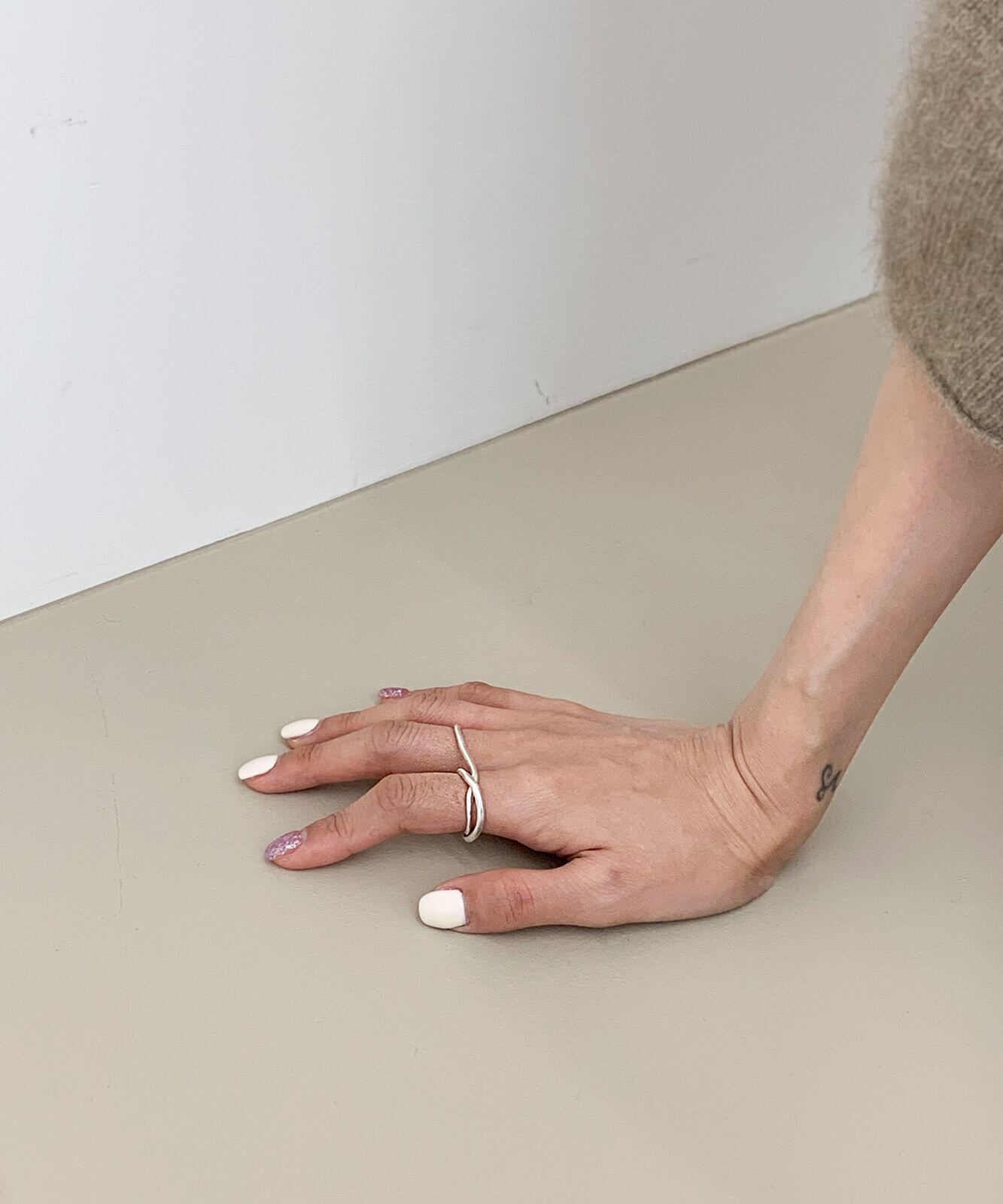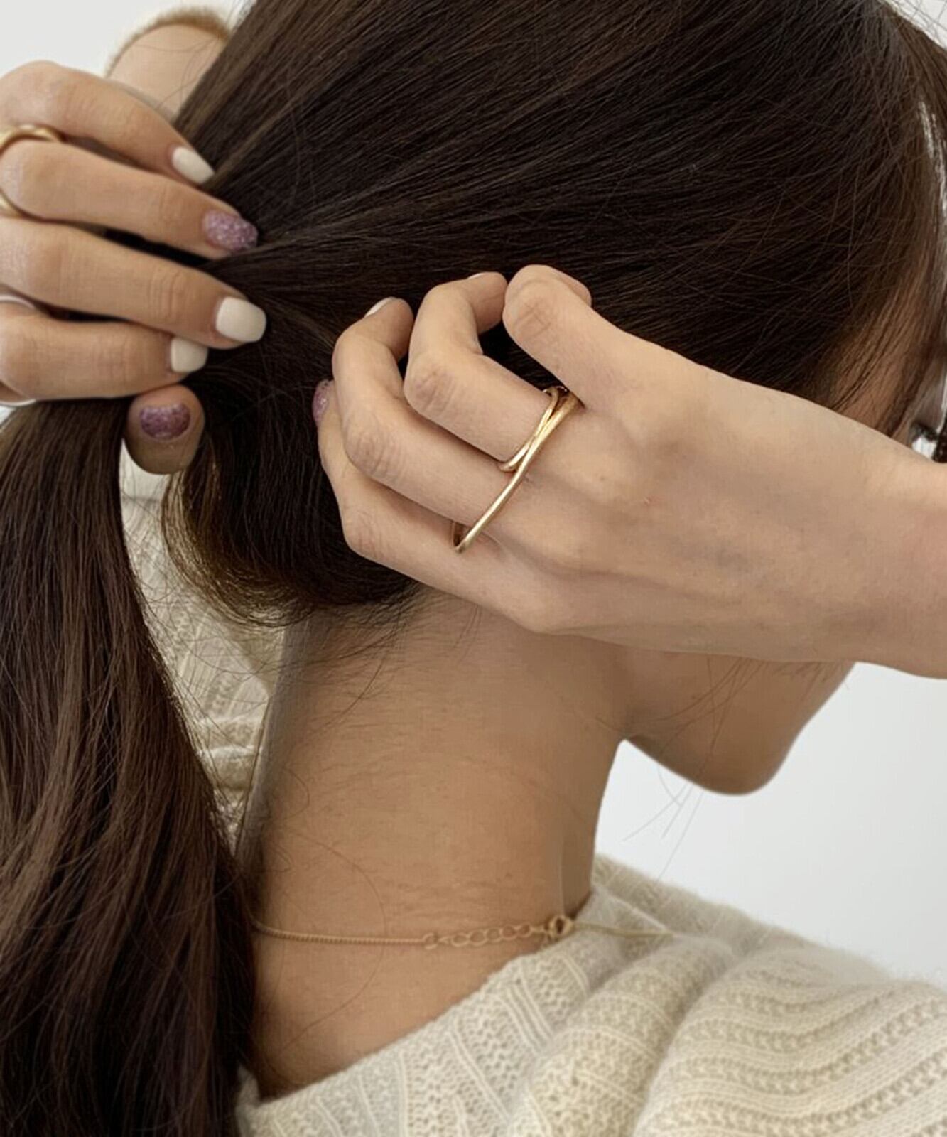 隣り合った2本の指につけるだけで、一気にこなれた印象を放つツーフィンガーリングです♪歪なラインが重なるようにひとつのシルエットを描いた、ニュアンス感たっぷりのアイテム。華奢なラインが女性らしい繊細さと、マットの艶が大人っぽく落ち着いた印象を放ちます。シンプルながらもひねりを効かせたユニークなデザインリングは、つけるだけで周りと差がつく手元のアクセントに!