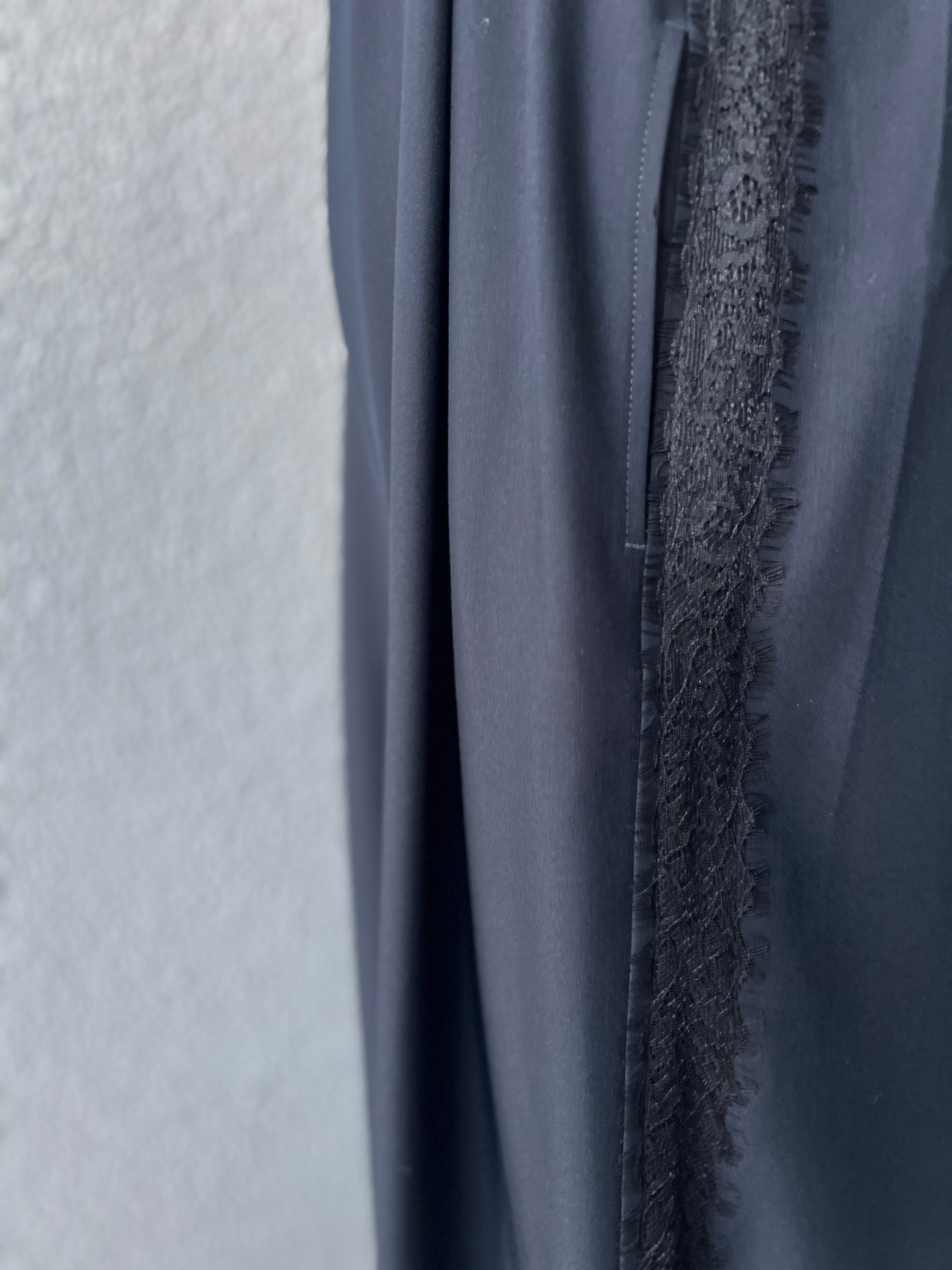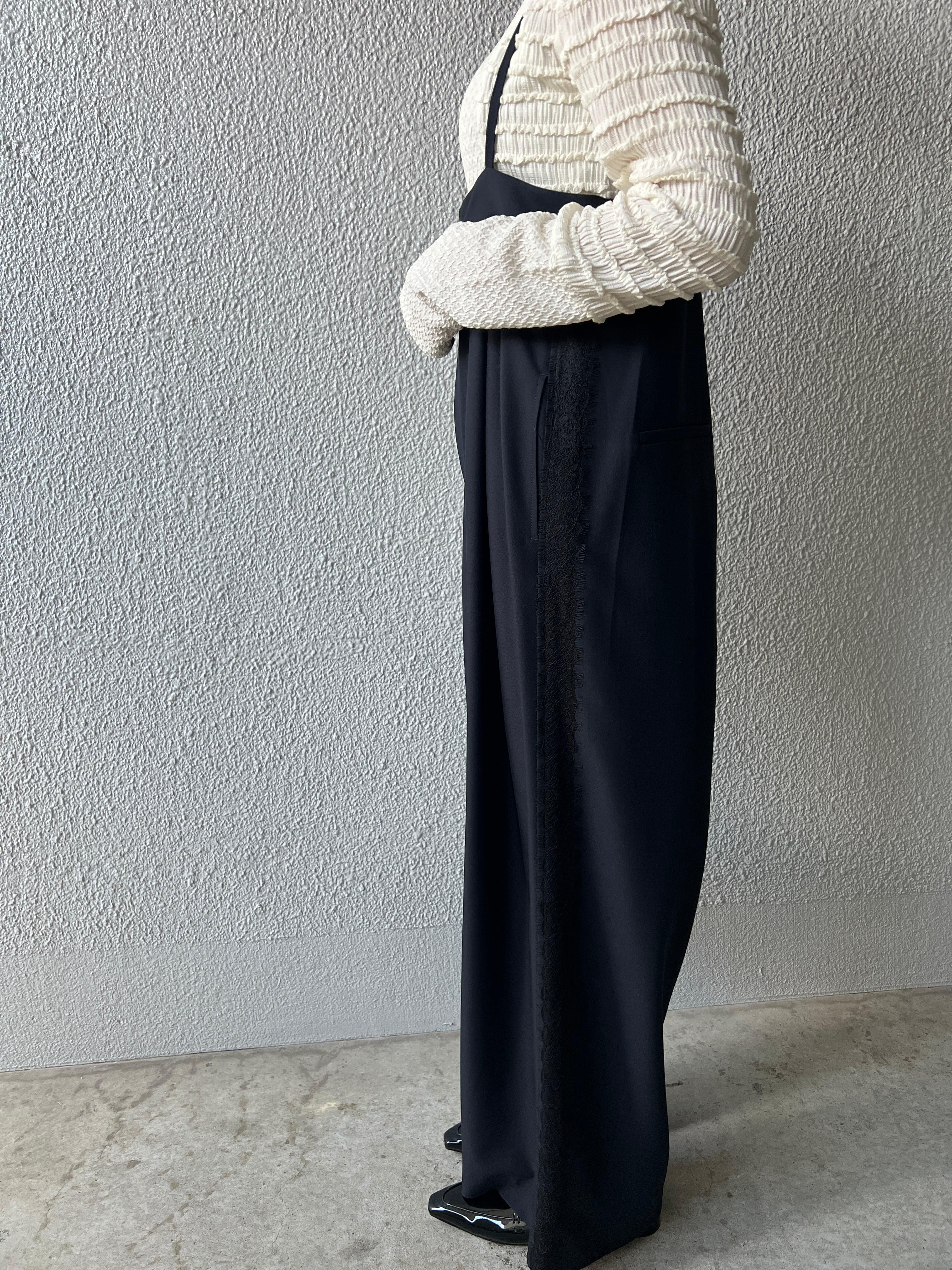 脇に入れたレースラインが、媚びない女らしさとモード感を。