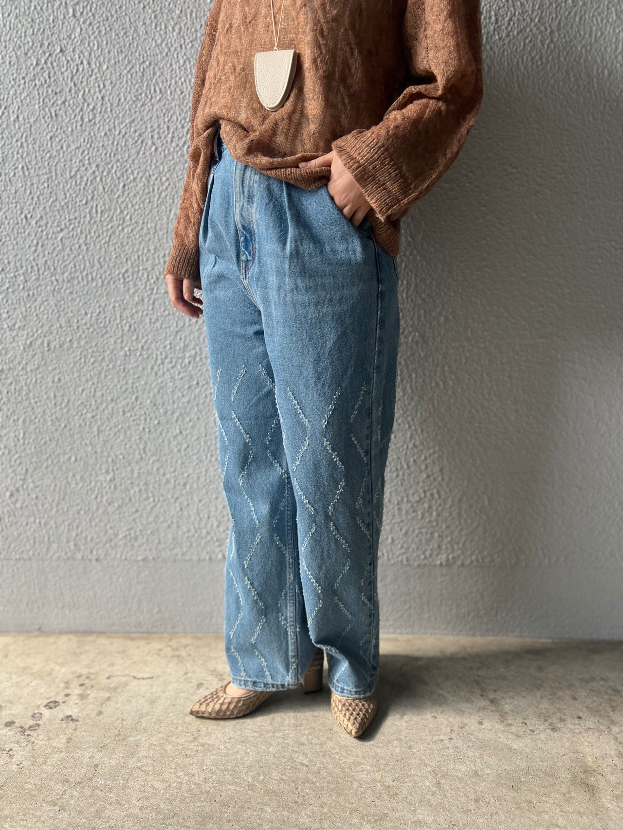 インパクトの強いデザインデニムはシンプルなトップスとの相性も良く、スタイリングの主役になる1枚です。