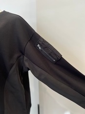 プルオーバーは袖にポケットが施された、MA-1風デザインで段ボール素材と布帛の切り替え。