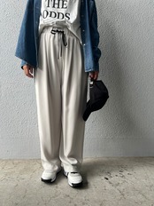 トロリとした落ち感のある素材が脚のラインを拾わずすっきりとした美脚を演出♪
