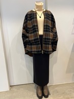 ノーカラーなのでタートルニットやボウタイブラウス、パーカー等との相性◎