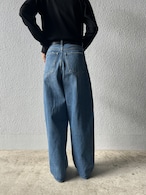 ハイウエスト、ヒップからワタリにかけて女性らしい丸みを持たせ、裾にむけてカーブをかけたシルエット。