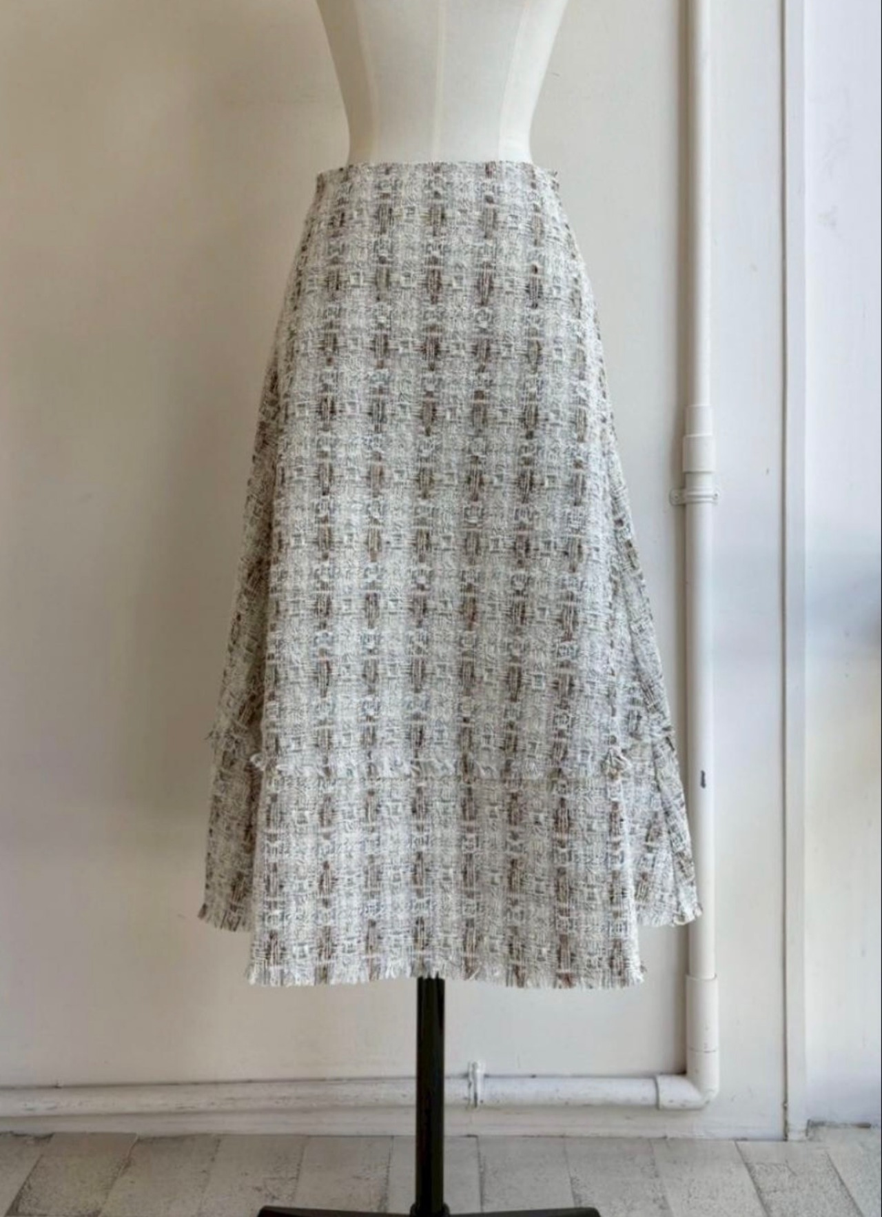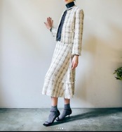 上品な印象を与えるウール混ツイードスカート