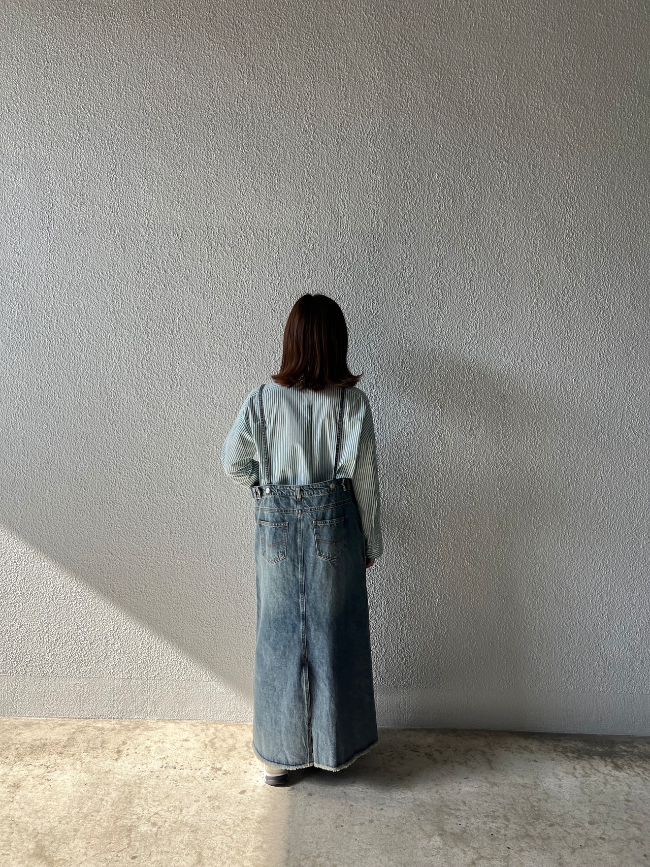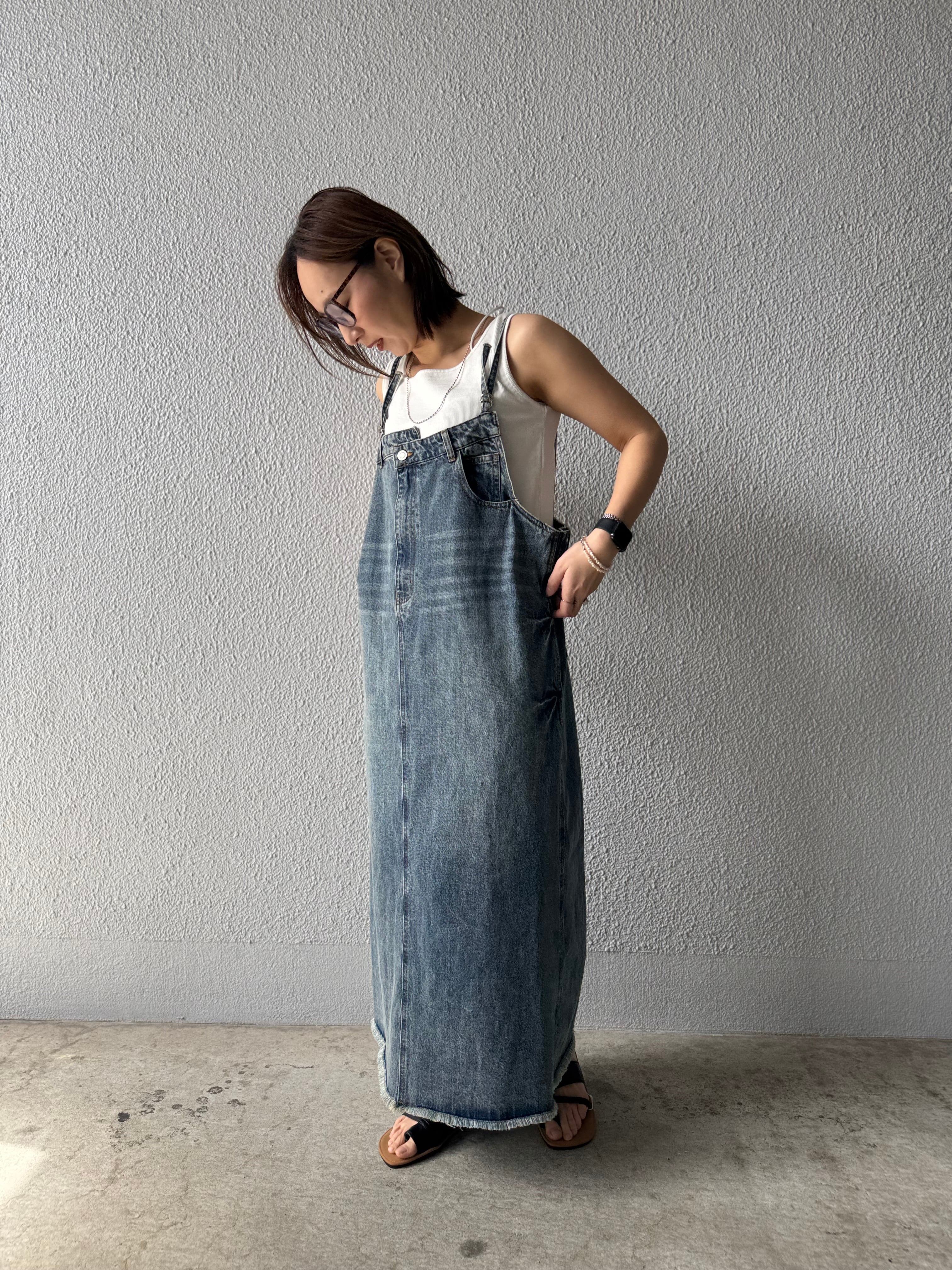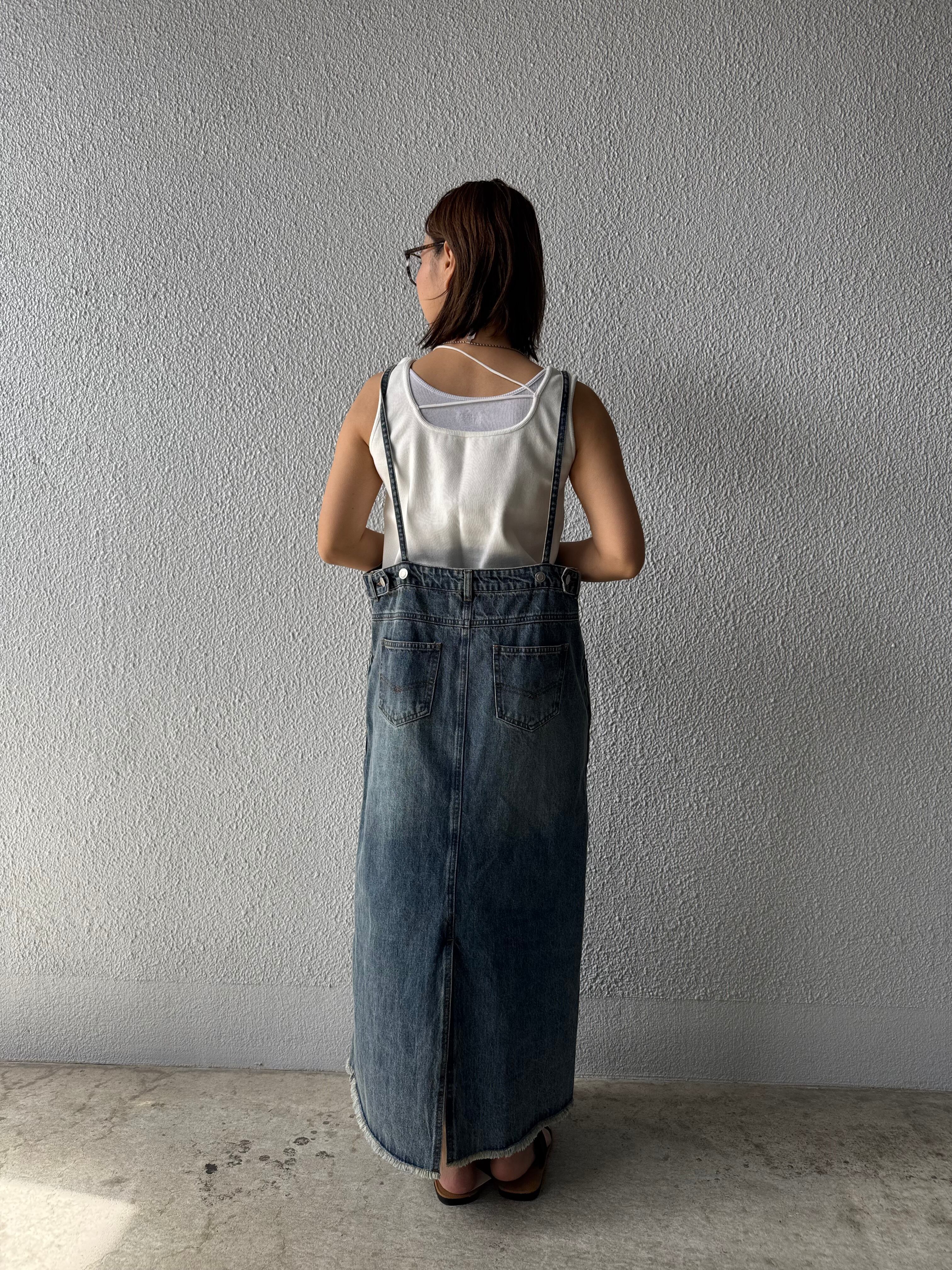 サイズ調整が可能なデニムサロペットスカート