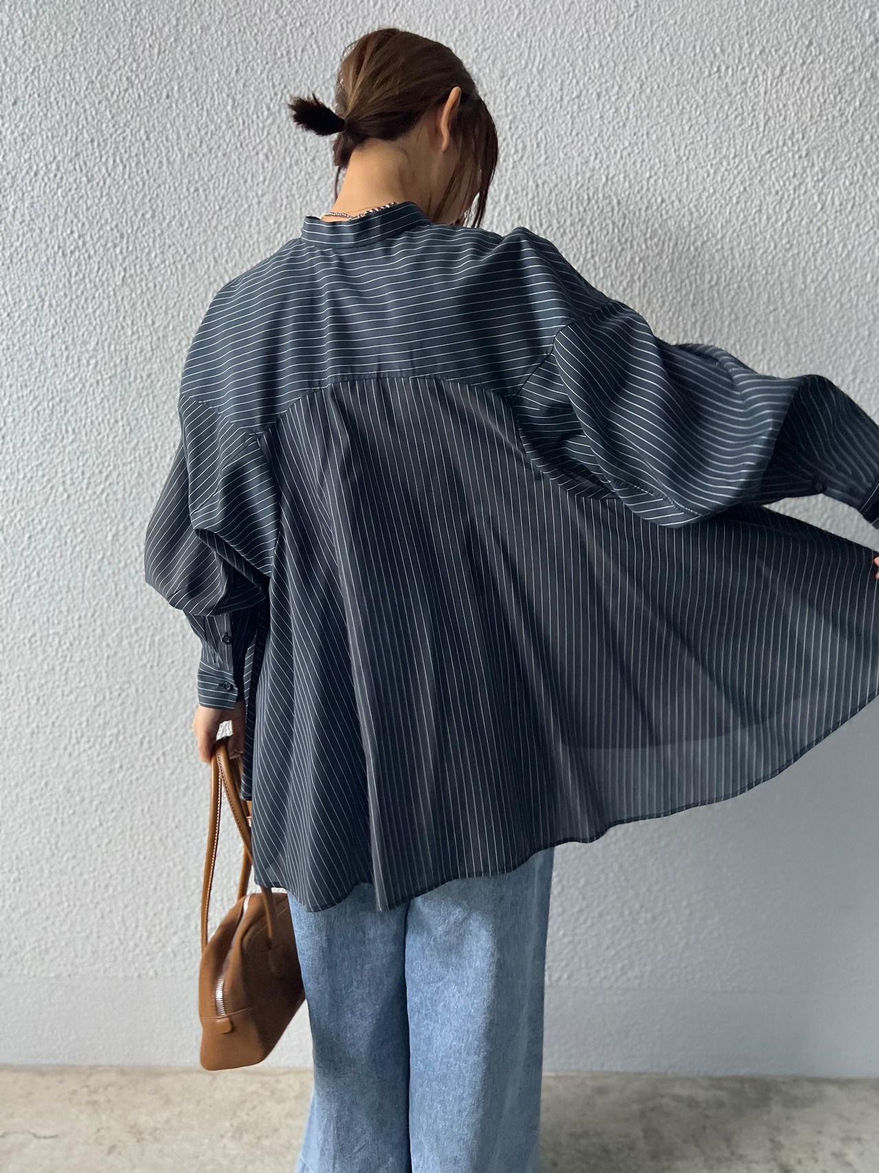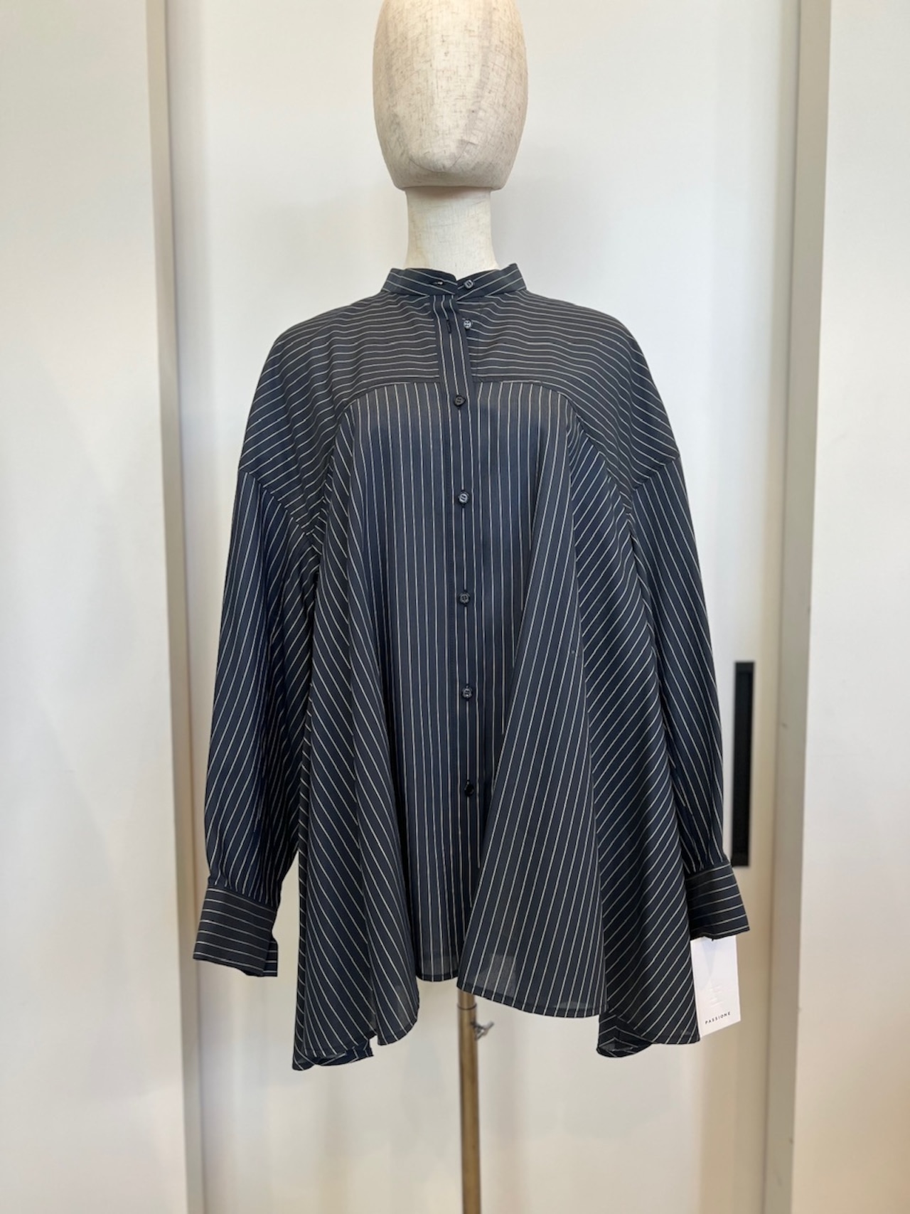 たっぷりな分量感の、フレアシルエットに広がるシャツ