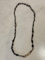 歪な形状の天然のオニキスと、黒のヴィンテージ(30年以上前のもの)のガラスビーズに2種類の真鍮ビーズを配列。