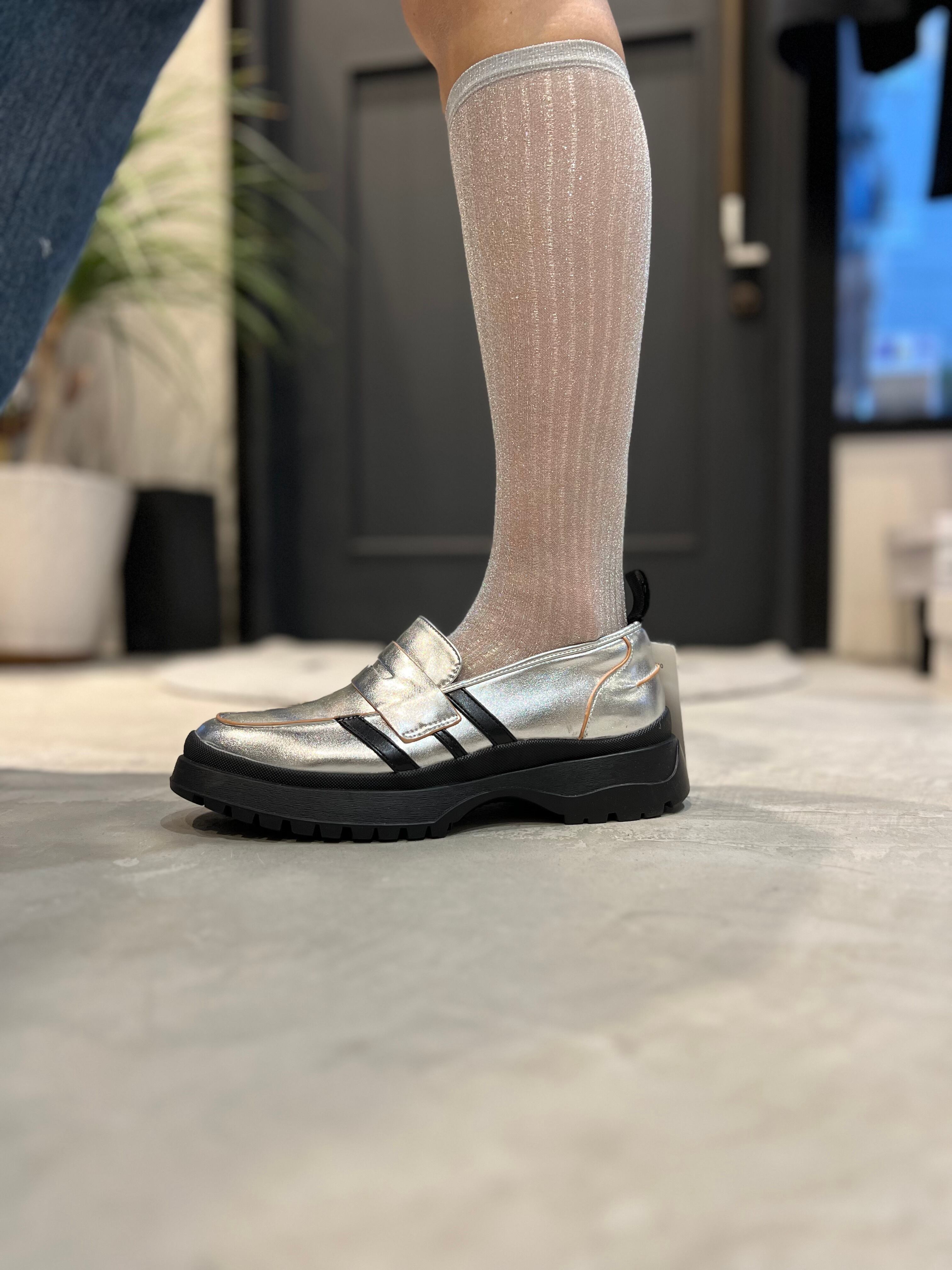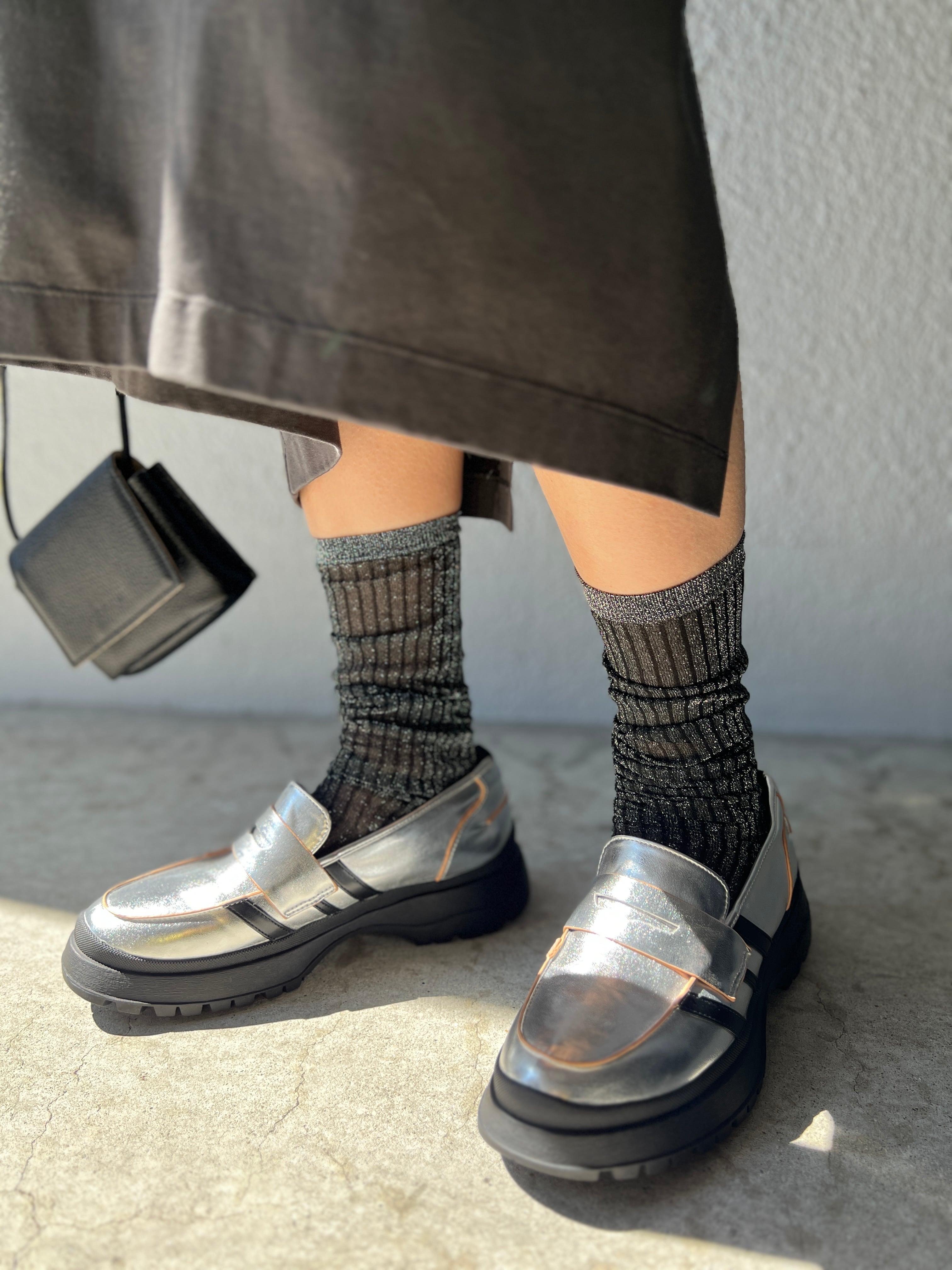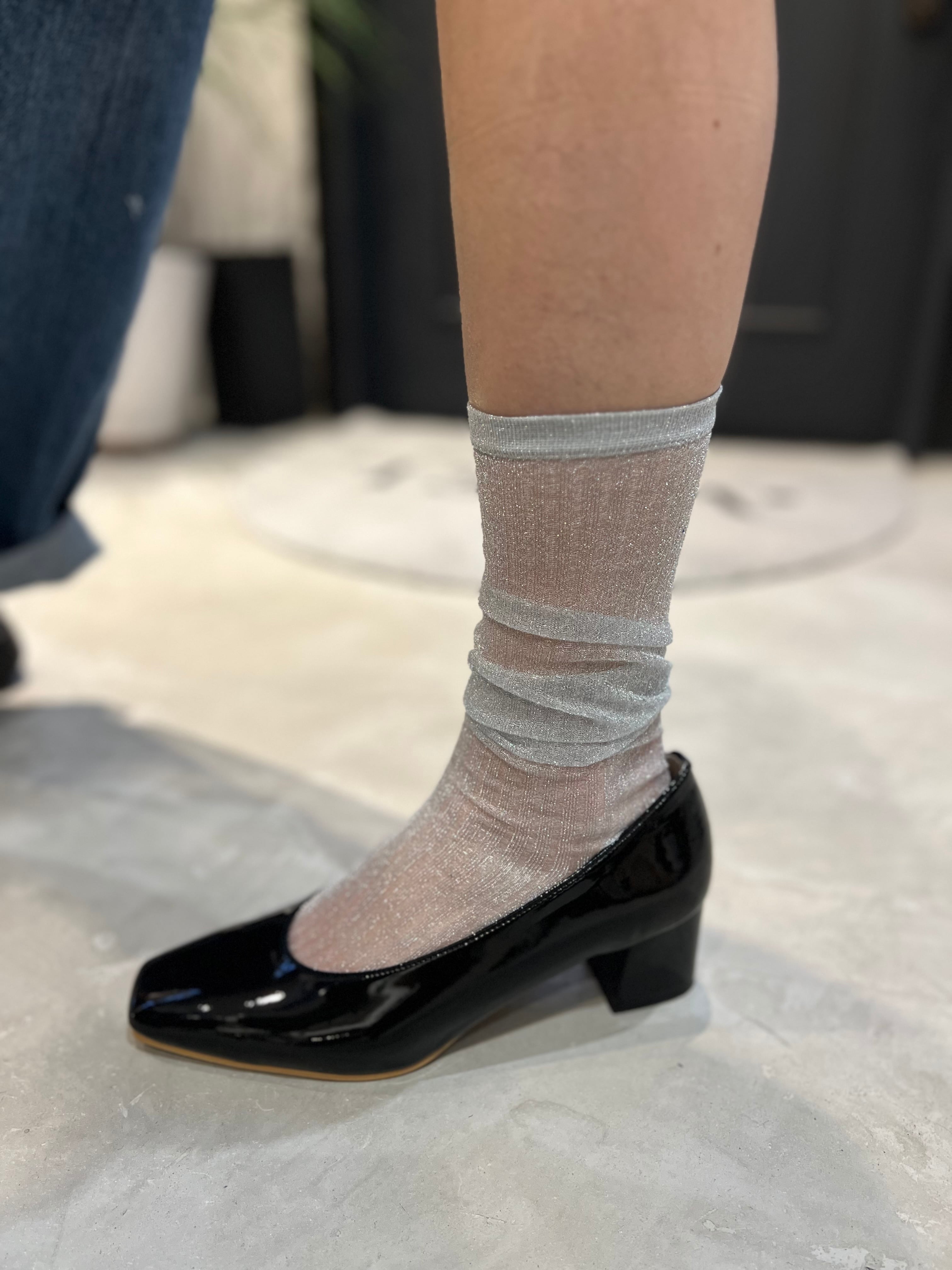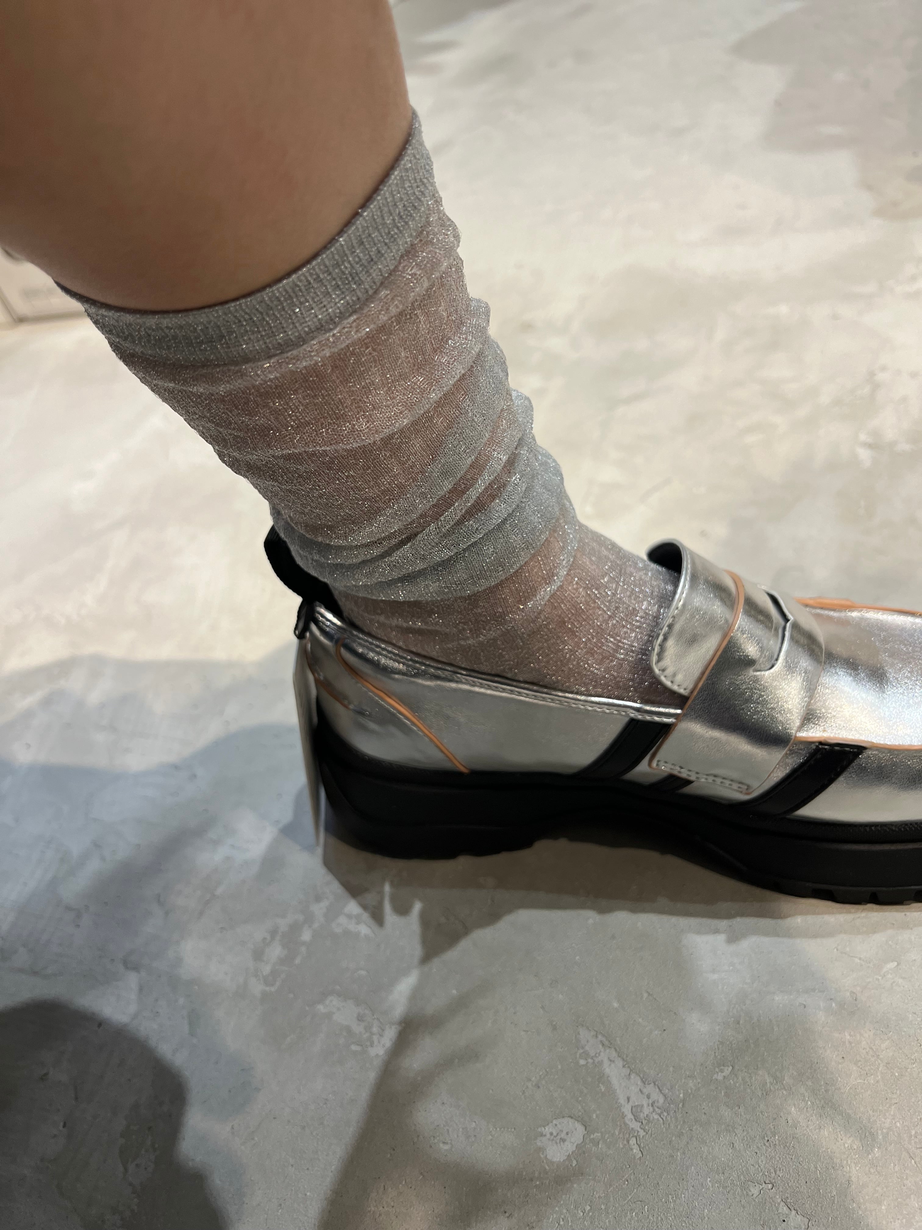 絶妙なシアー感とラメが上品可愛いハイソックス。