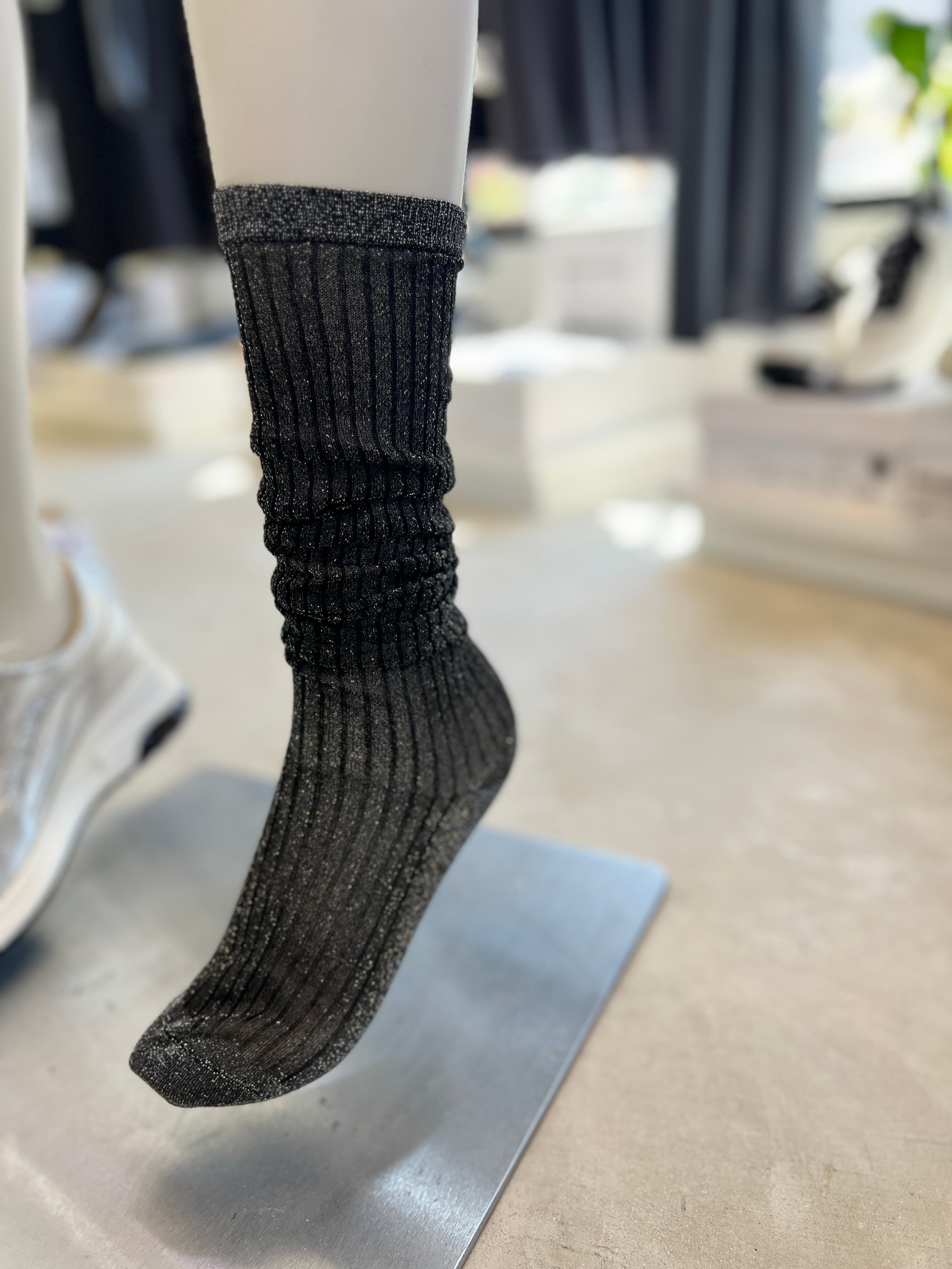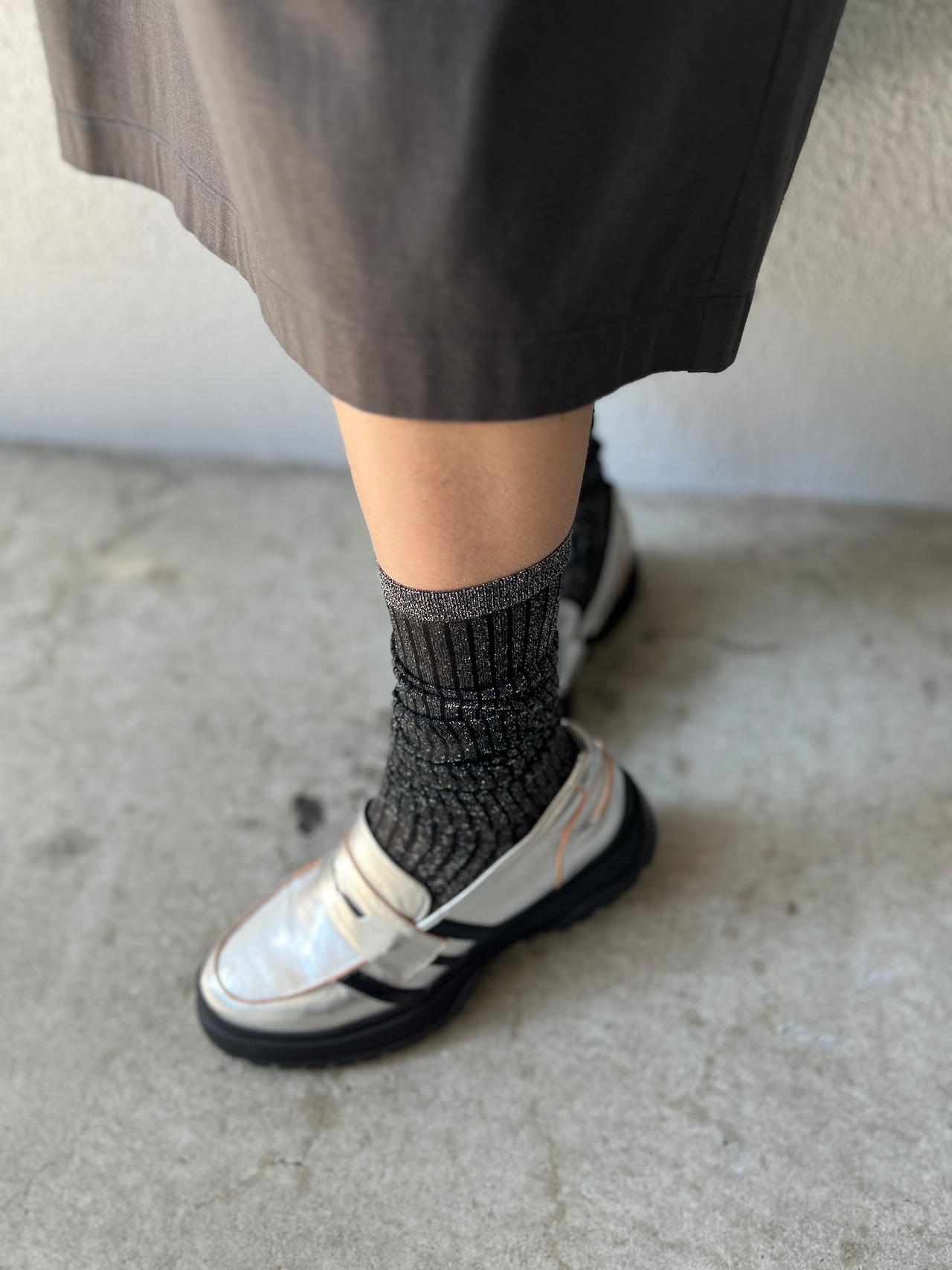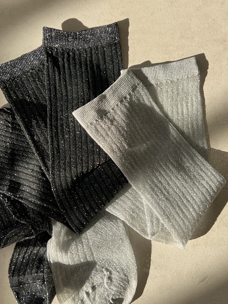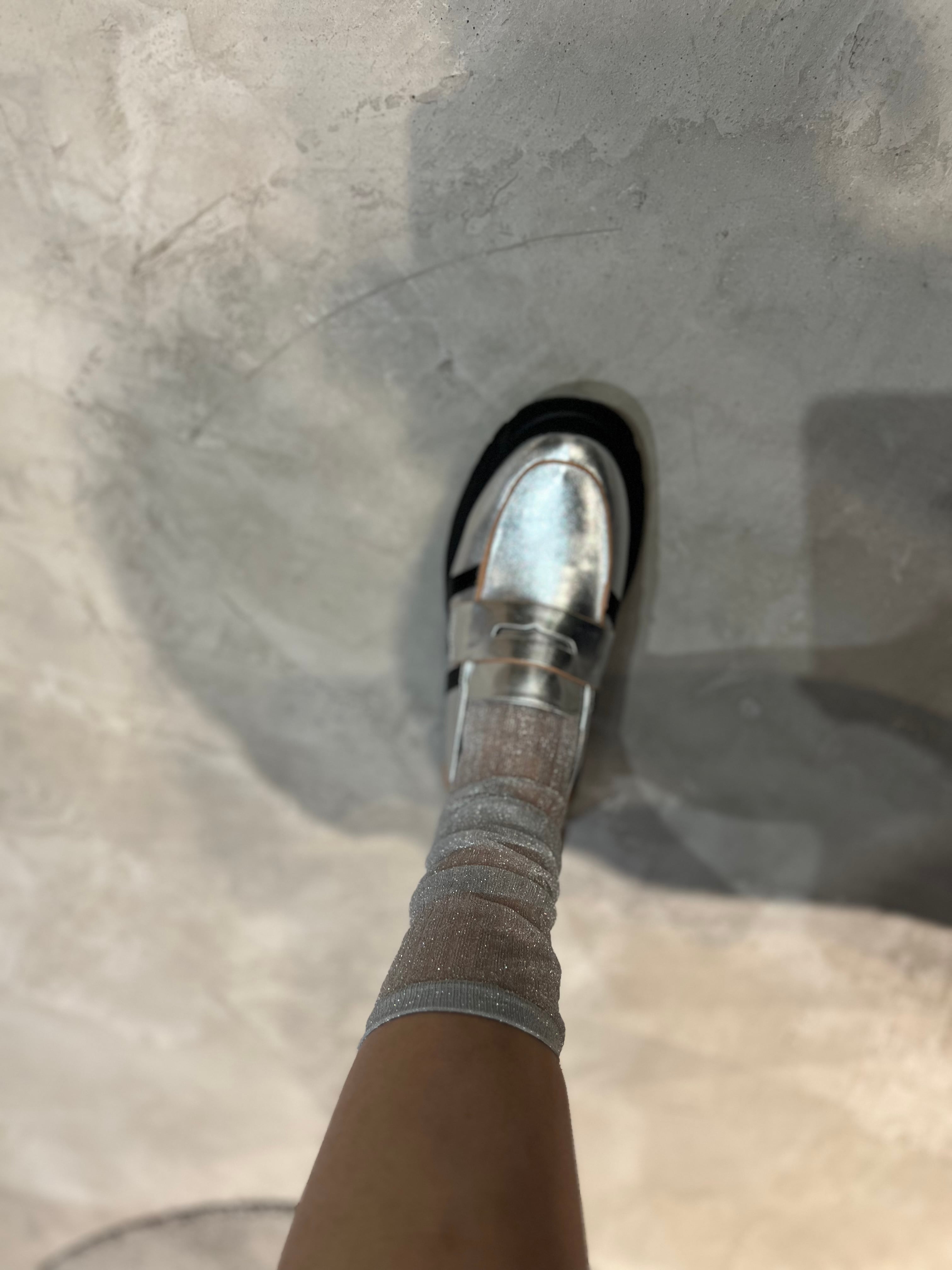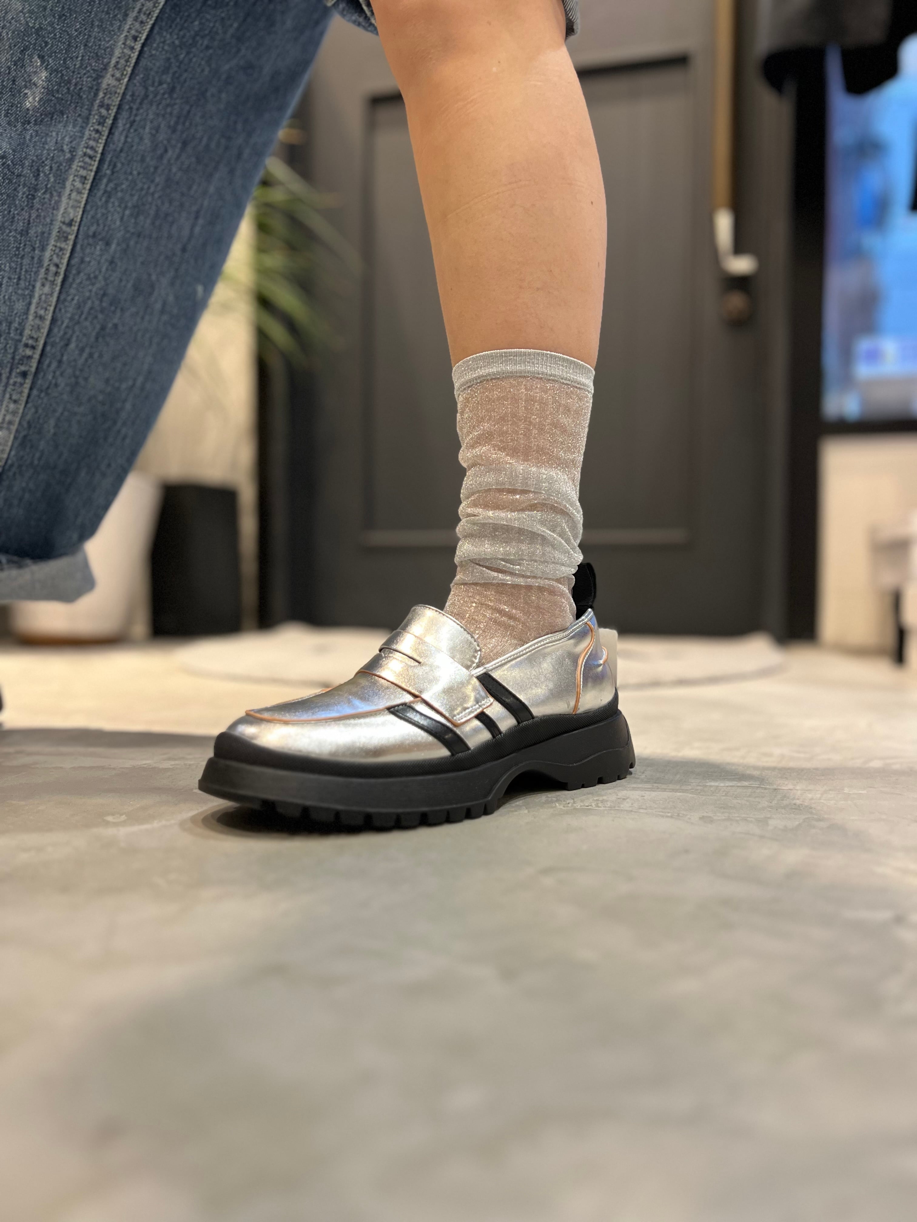 絶妙なシアー感とラメが上品可愛いハイソックス。