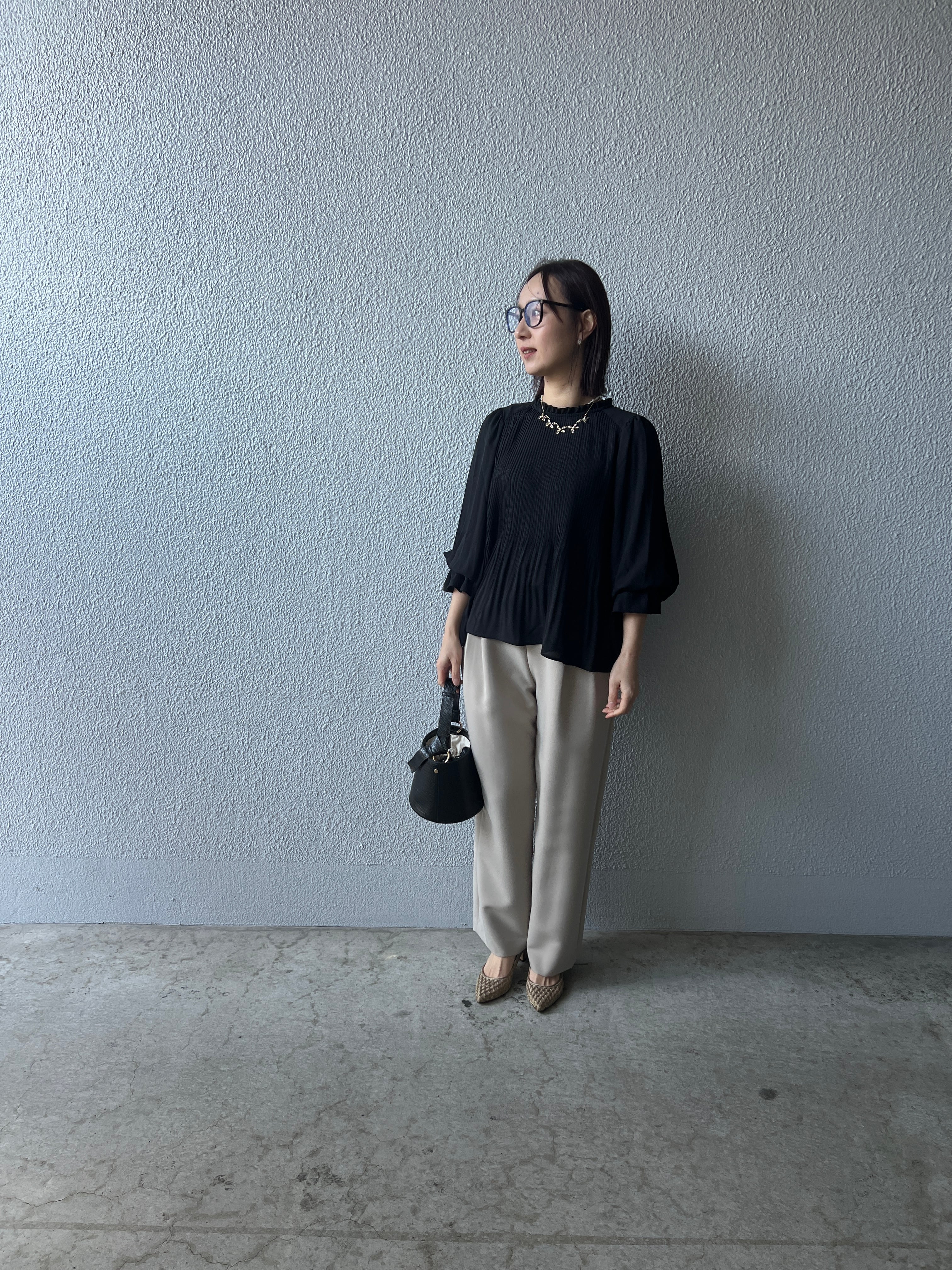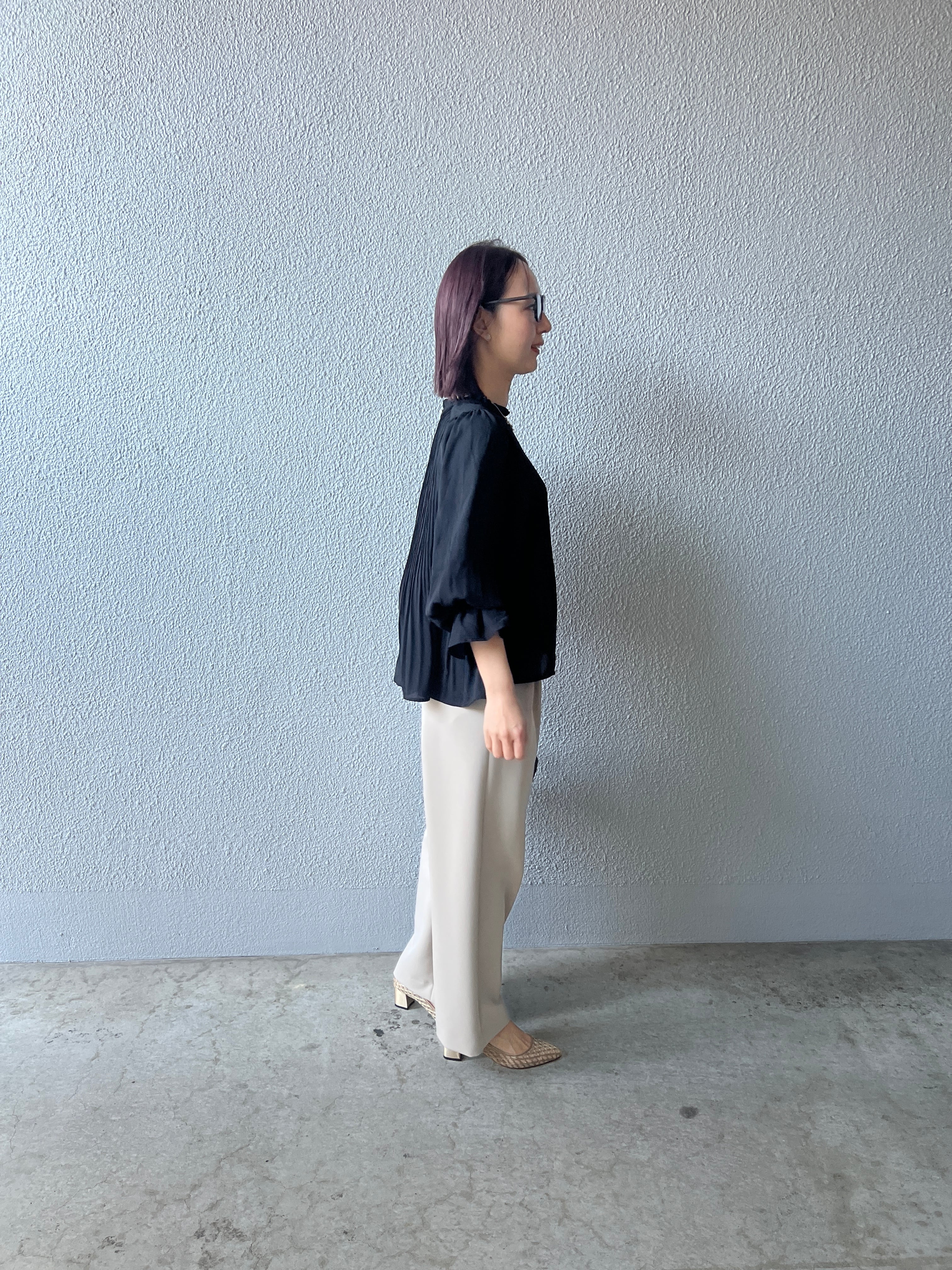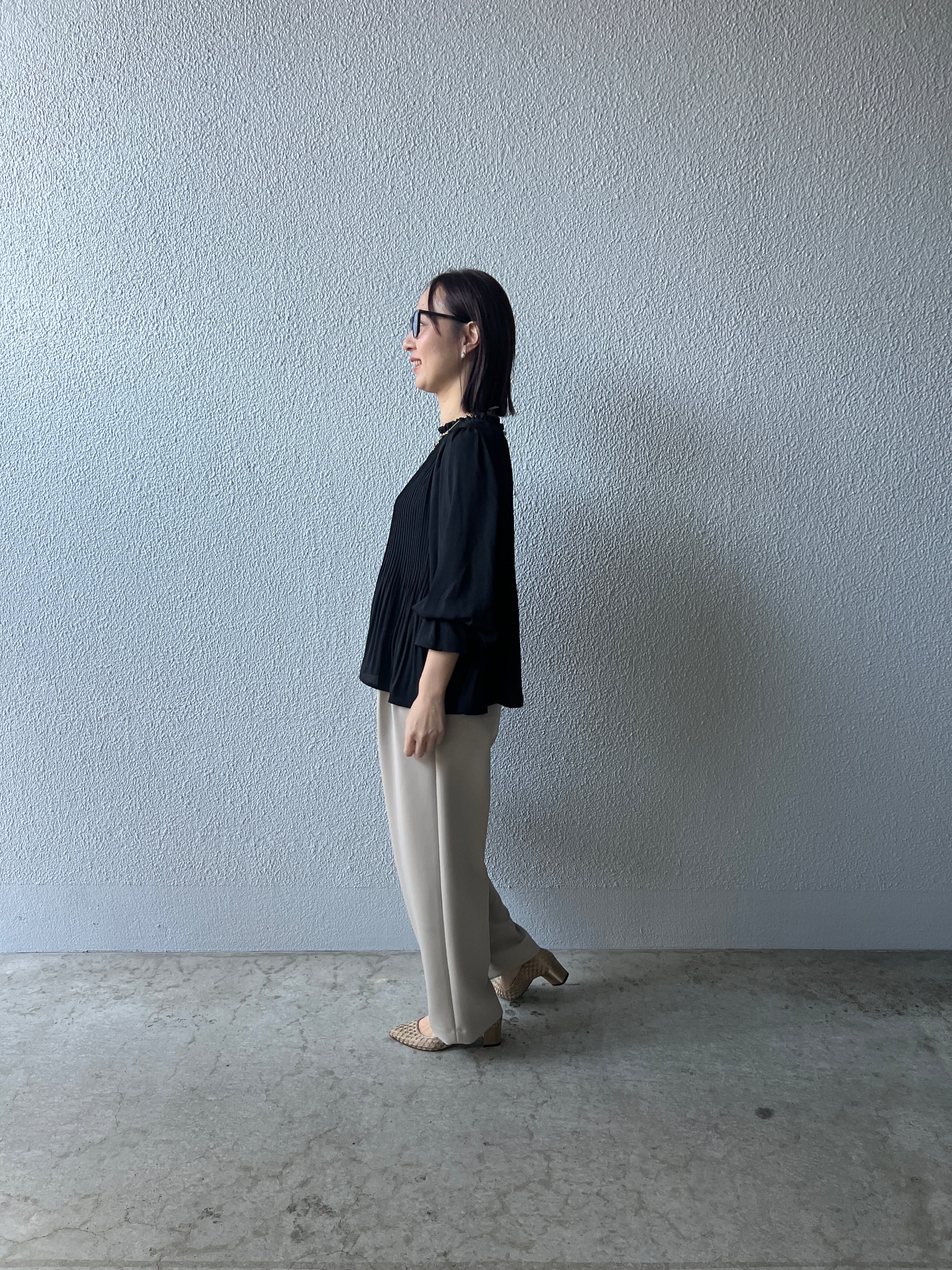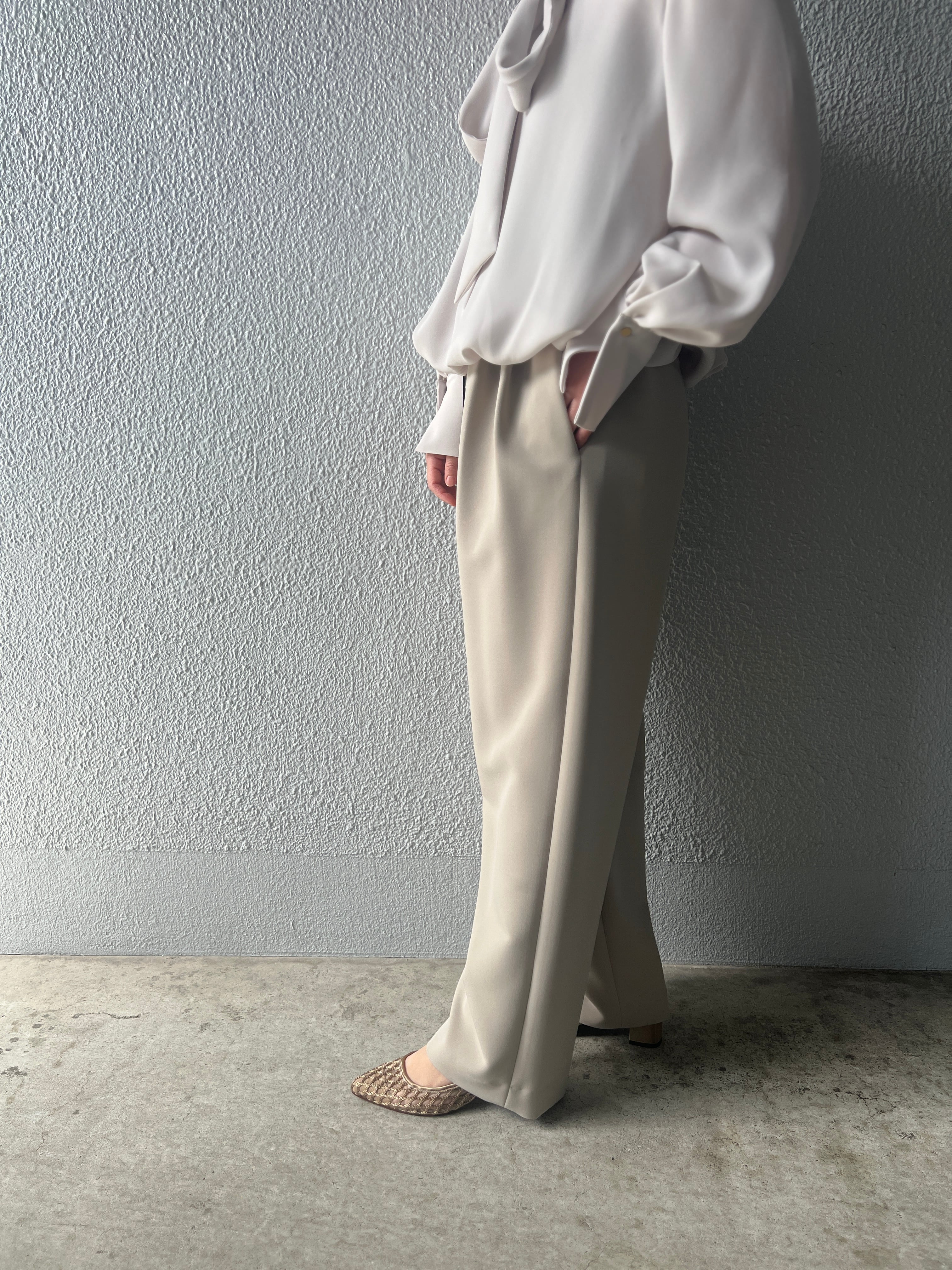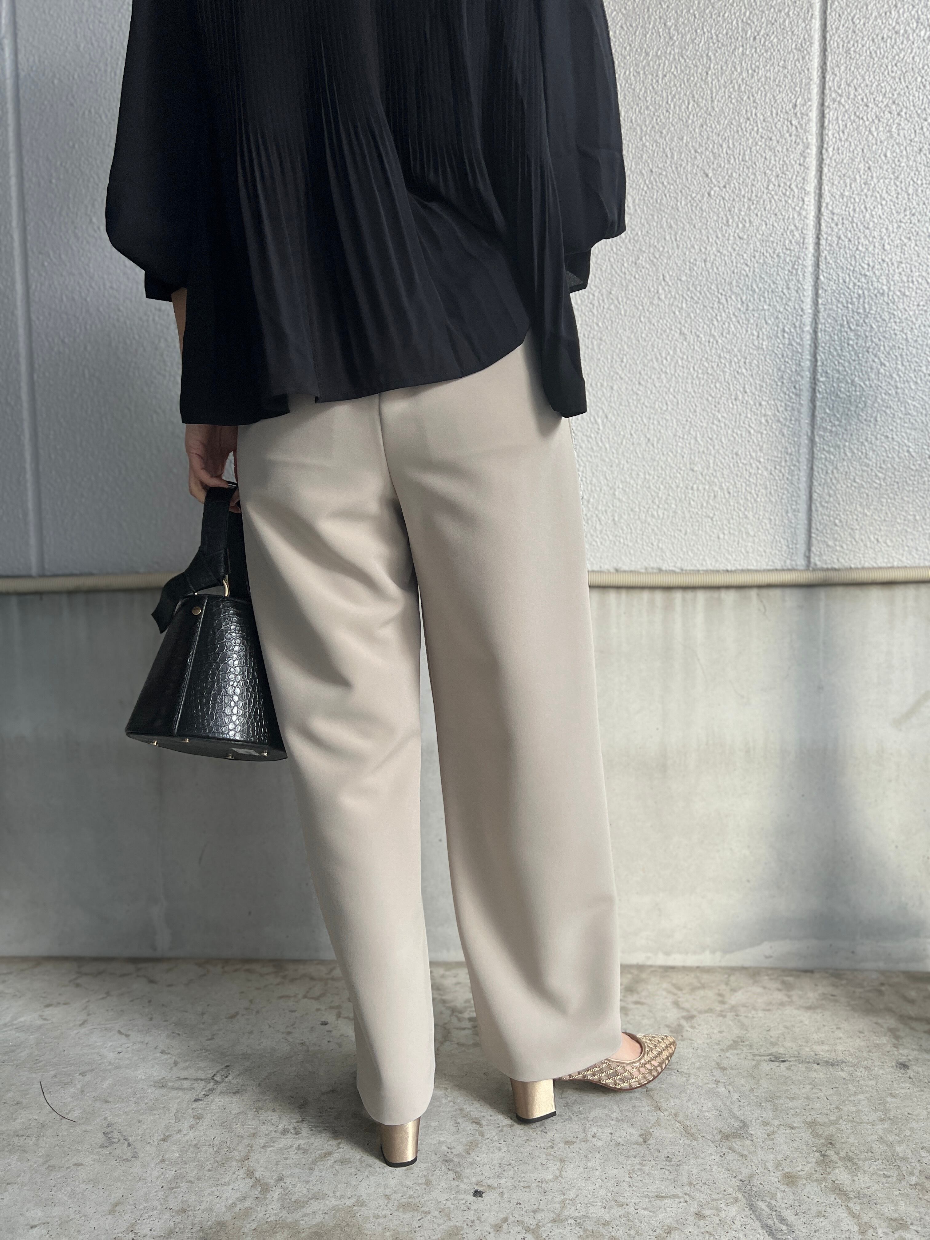 タックによりウエスト、ヒップ周りはゆったり設計。
