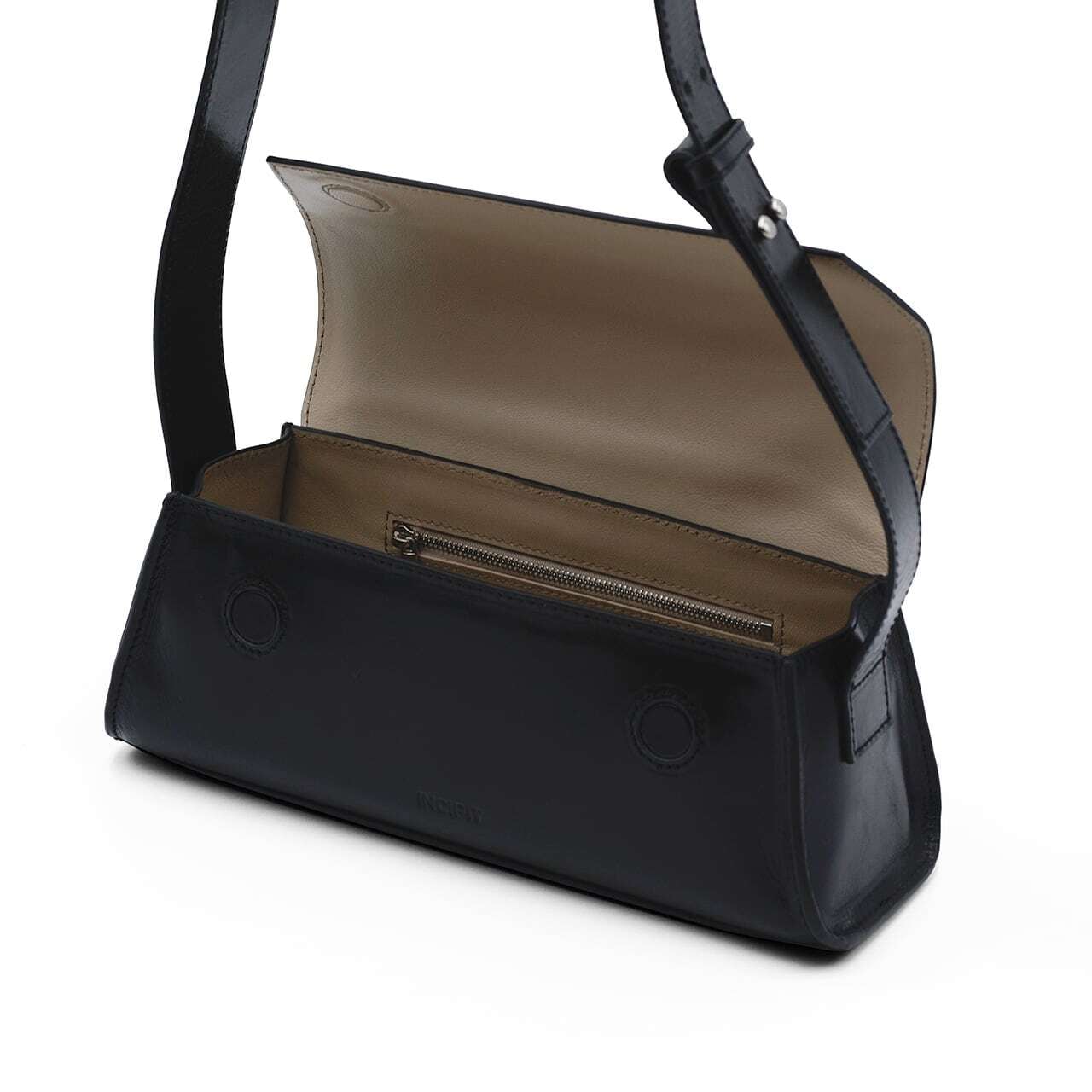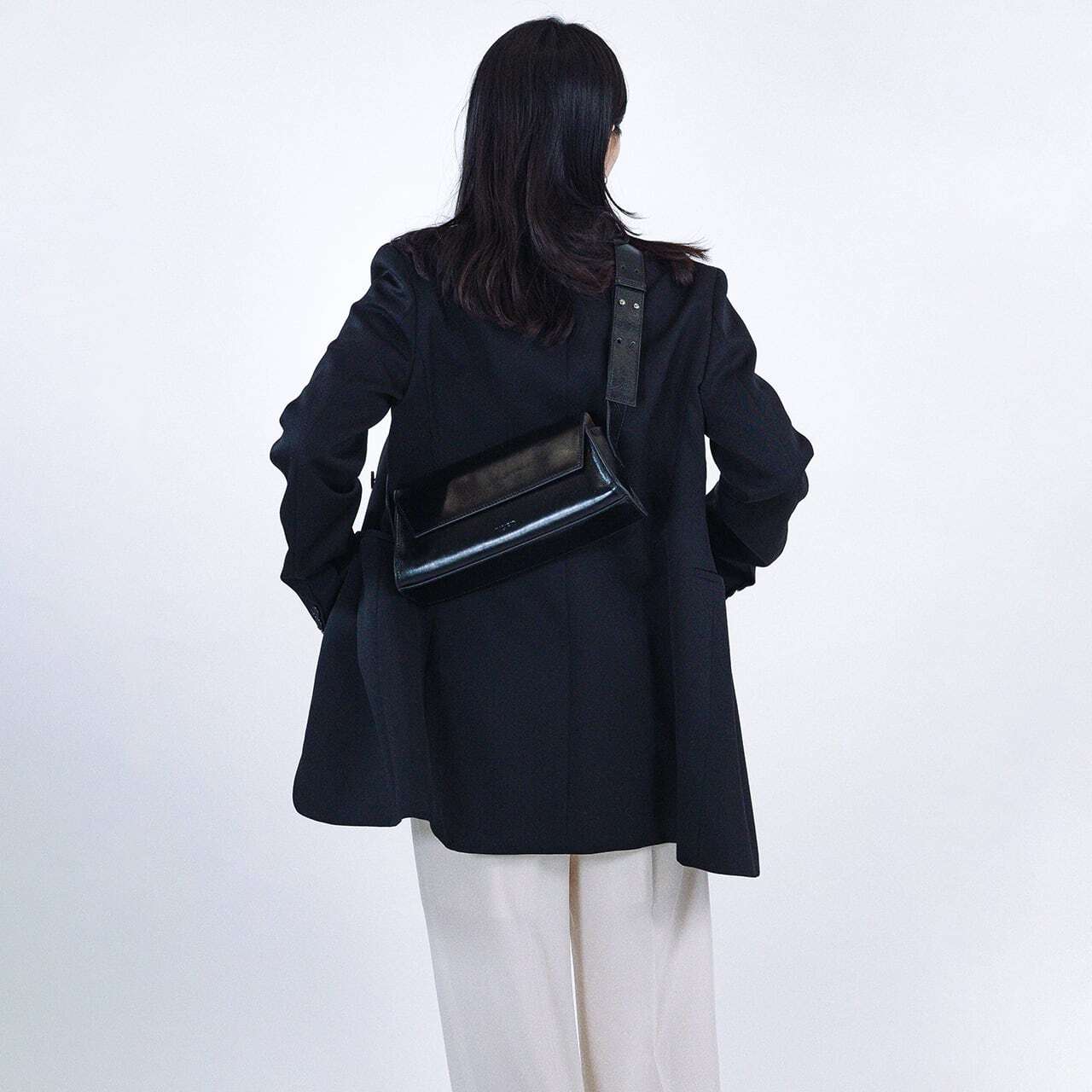 工具箱からインスパイアされたボディーバッグ、デイリーにコーディネートしやすい大きさ。