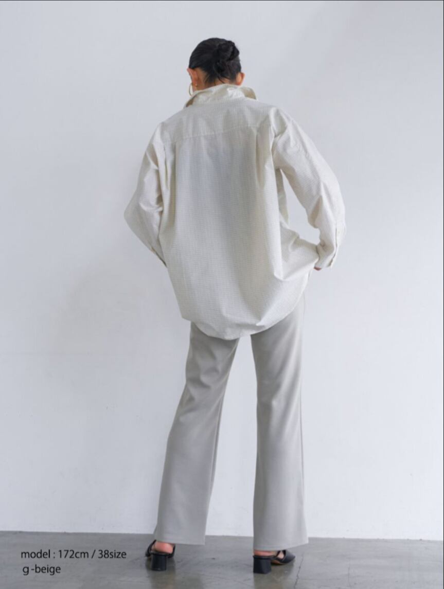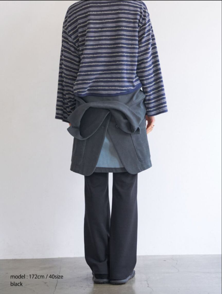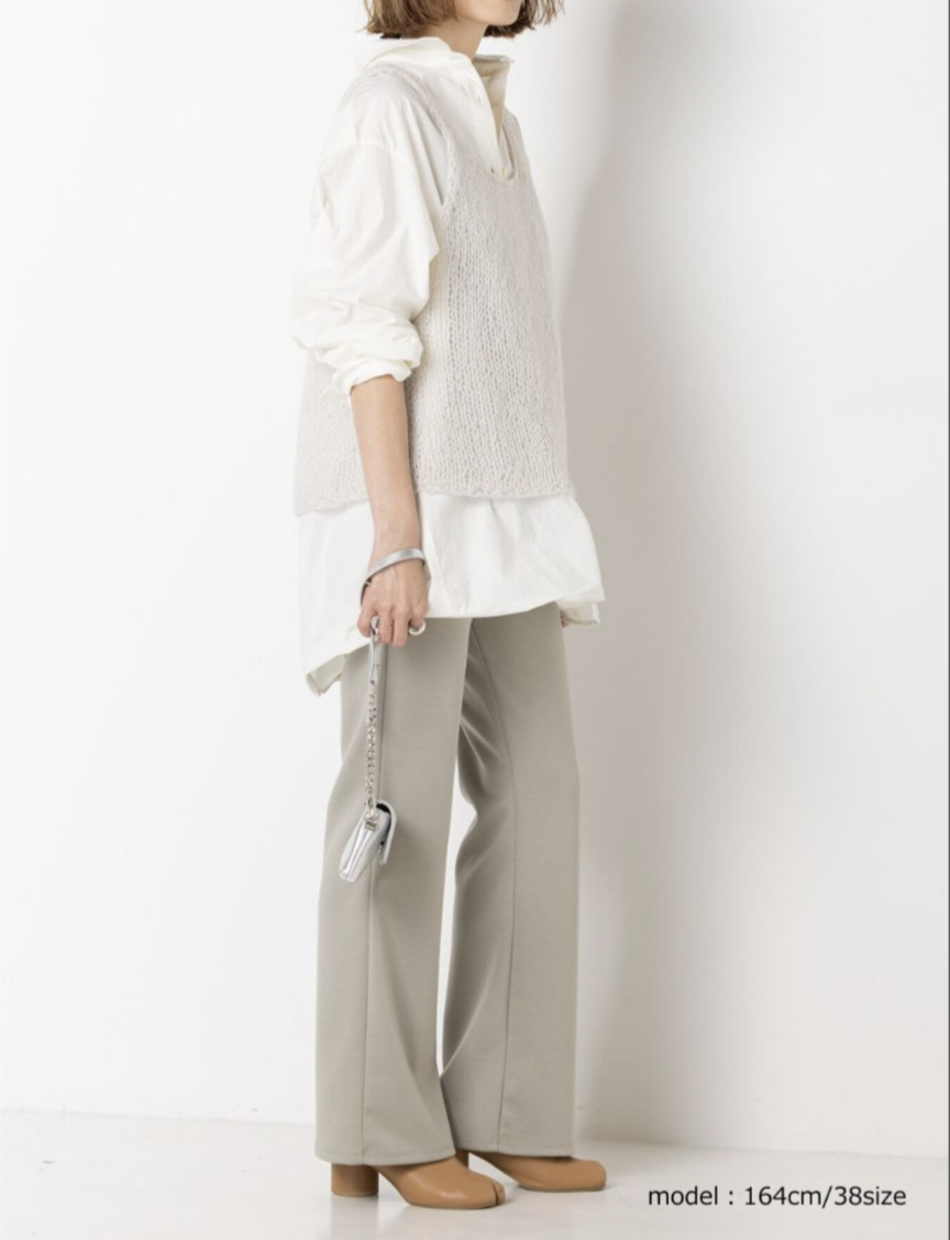 足回りのサイズに少しゆとりを出してきれいに落ちるセミフレアシルエットに仕上げました。