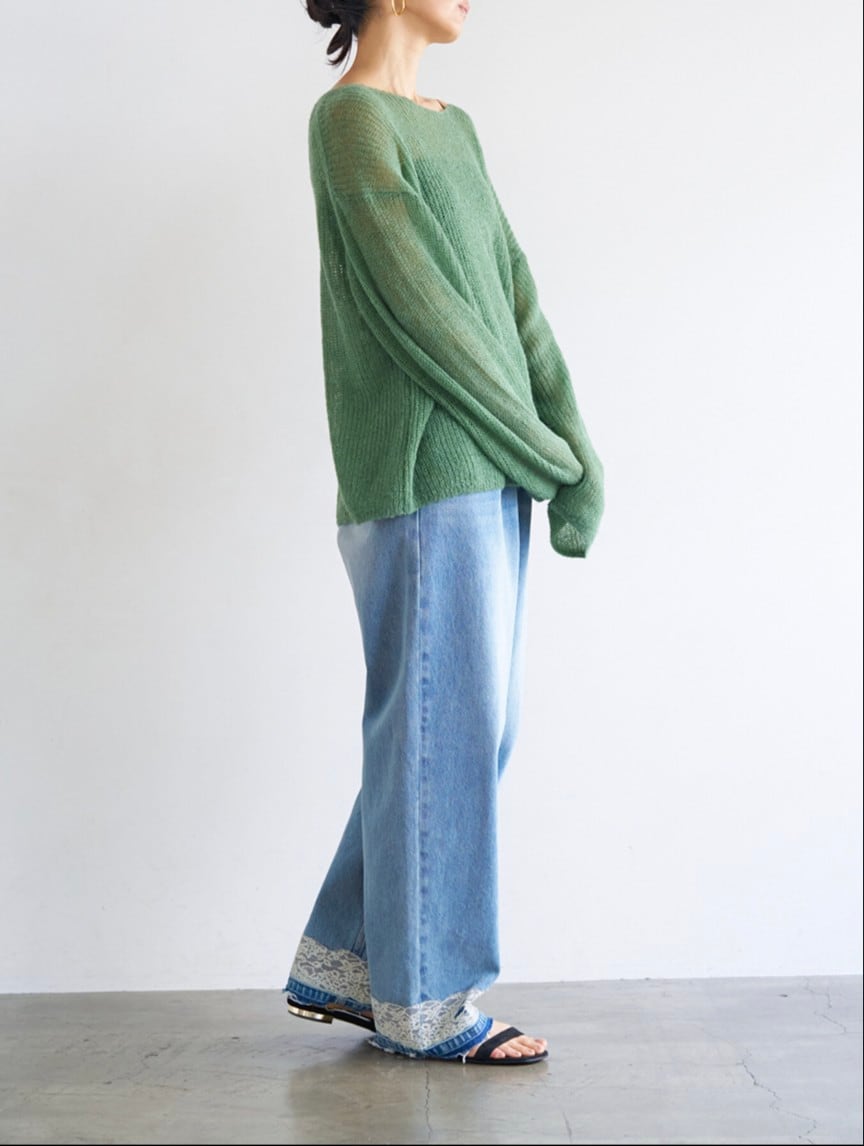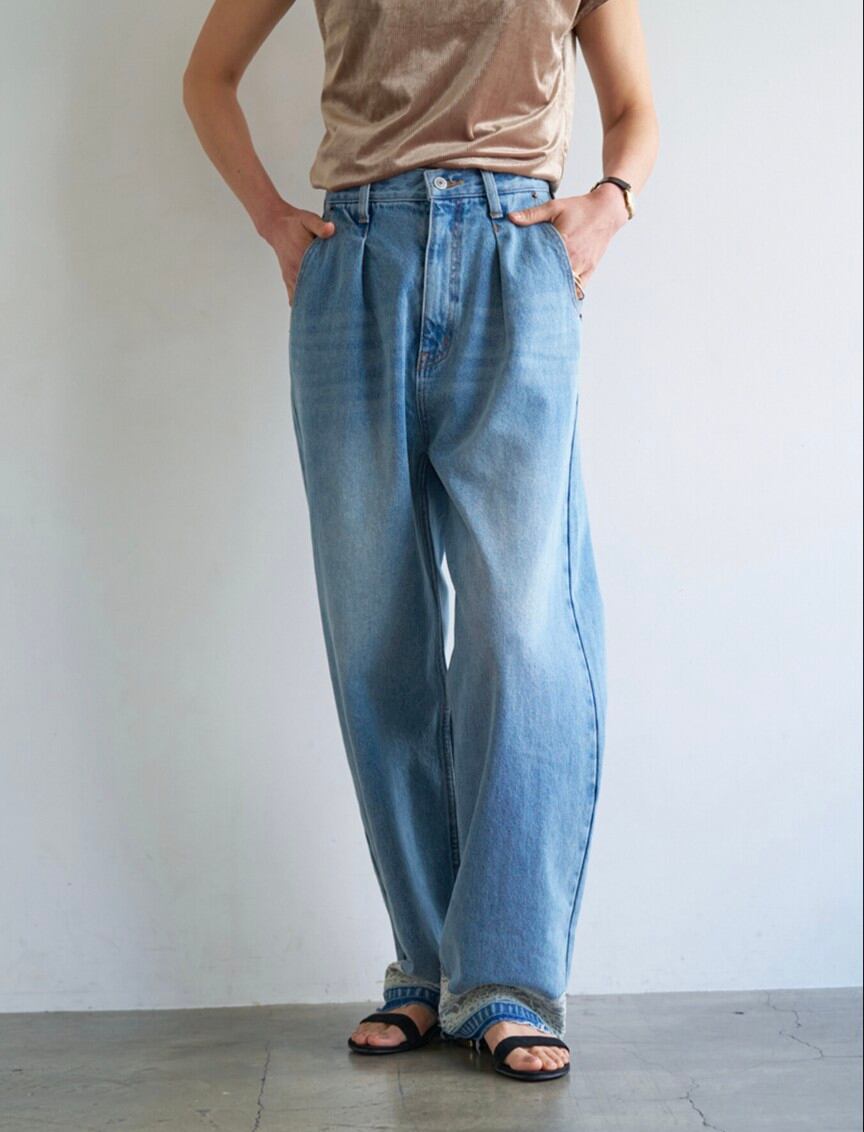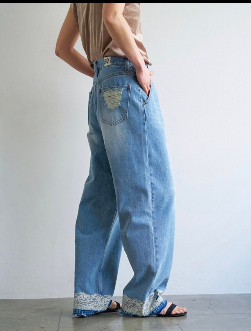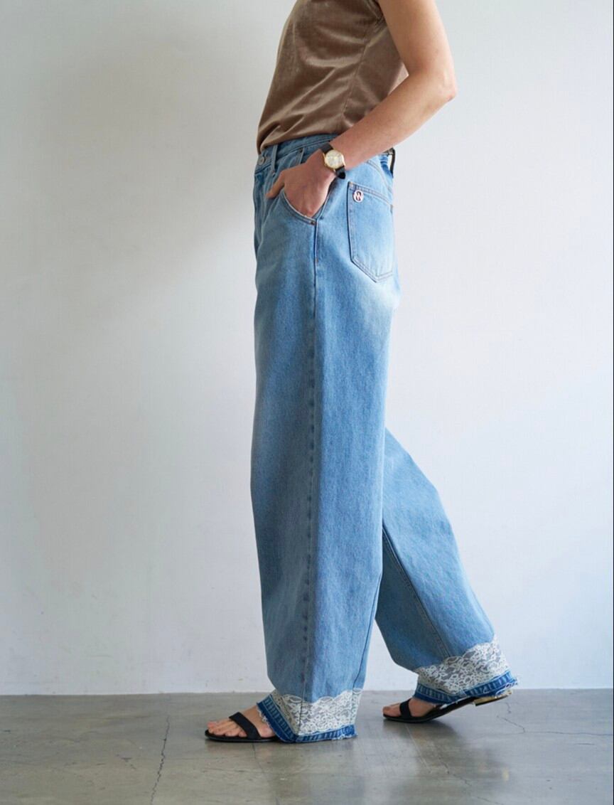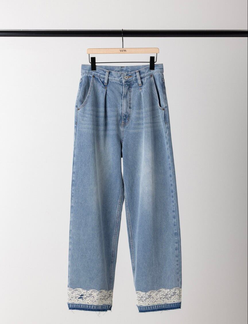 予約【YENN】[Y263-31097] LACE HEM TUCK DENIM