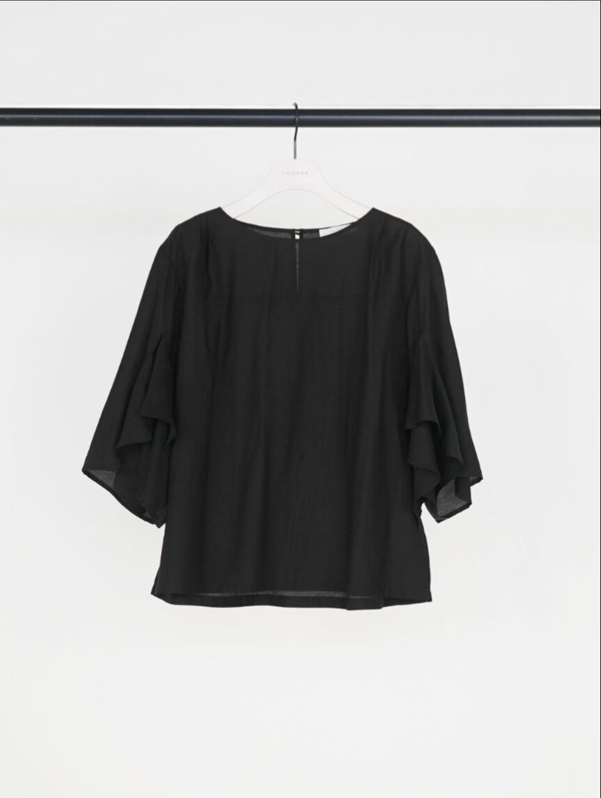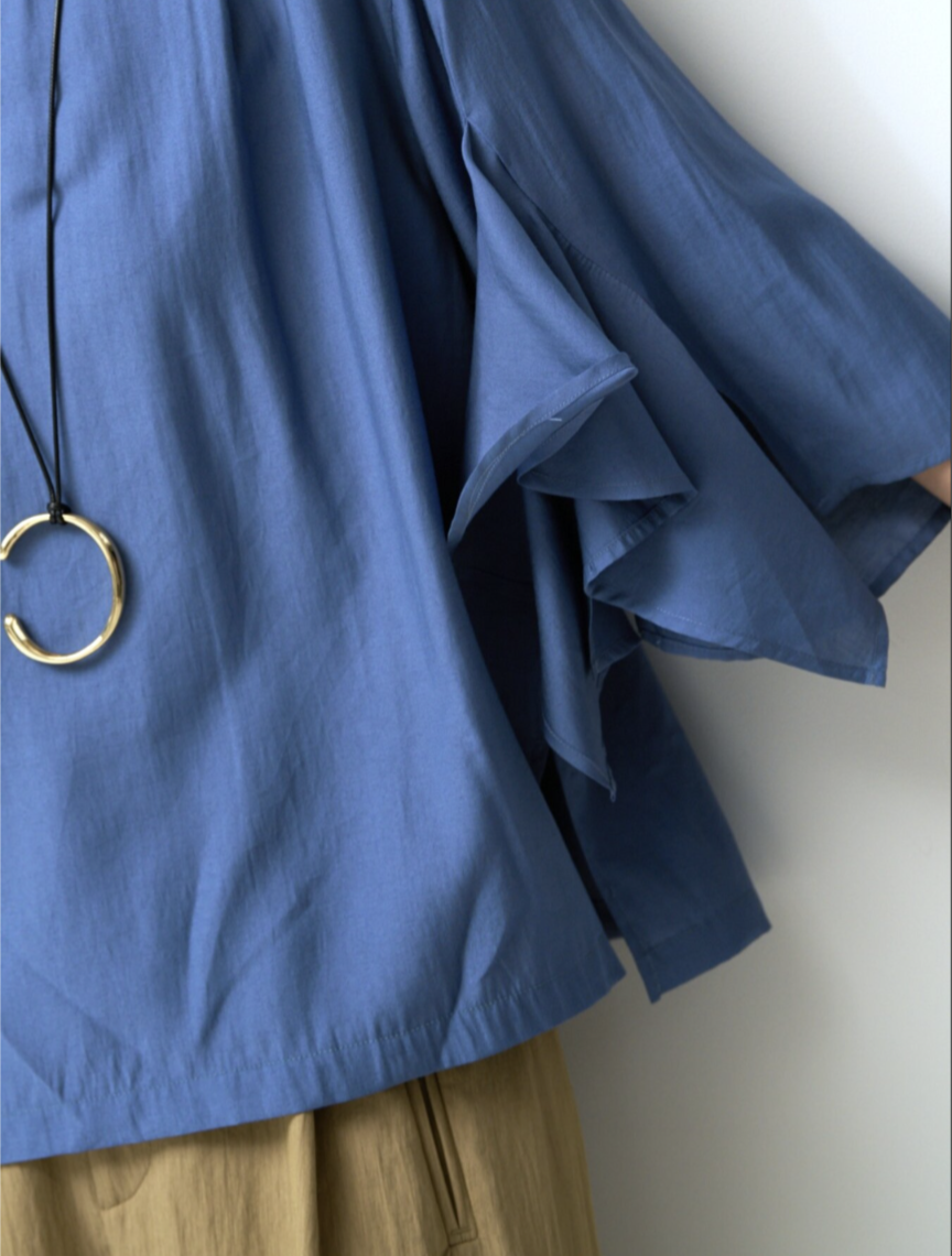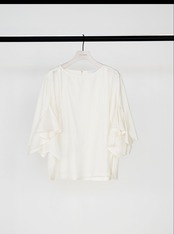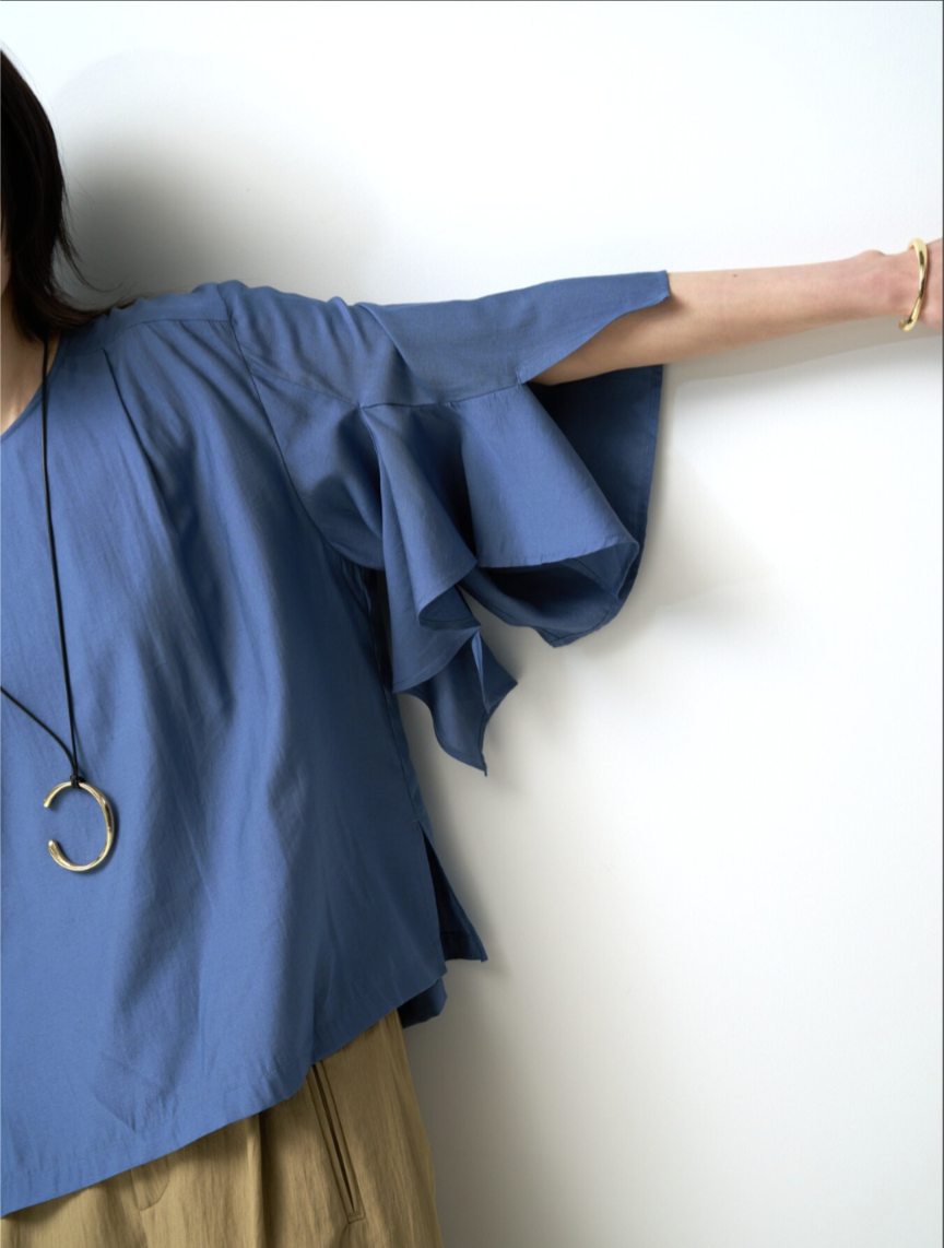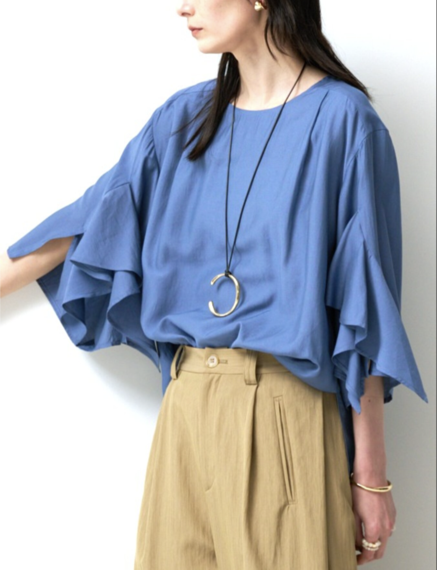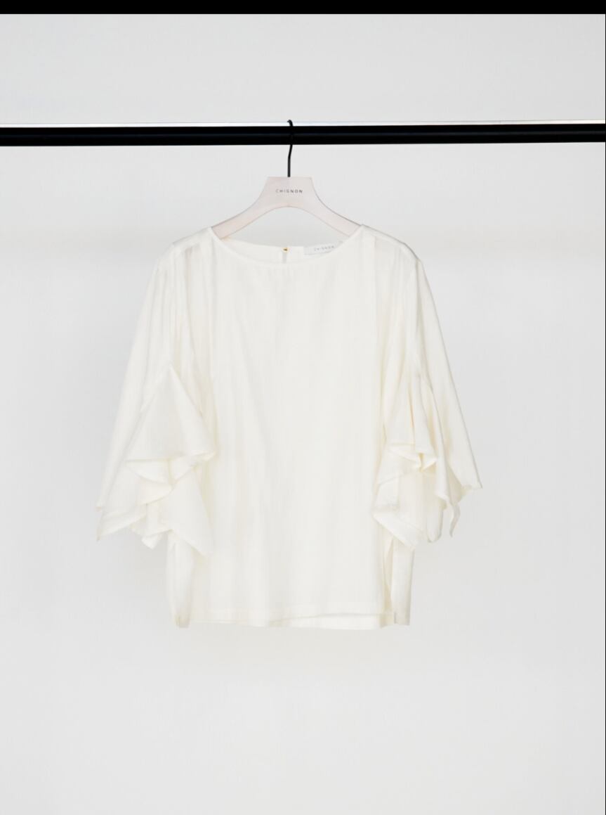 華やかな袖のフリルデザインがポイントのブラウス。