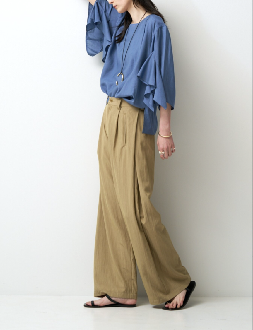 オンにもオフにも使える、着回し力の高いブラウスです。