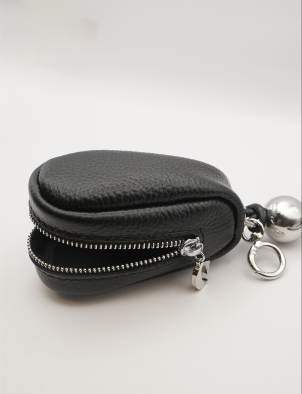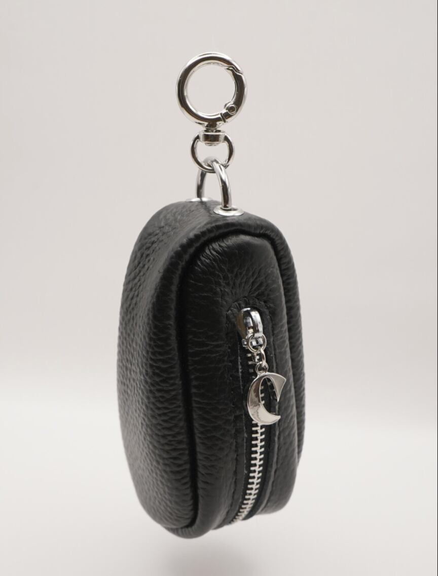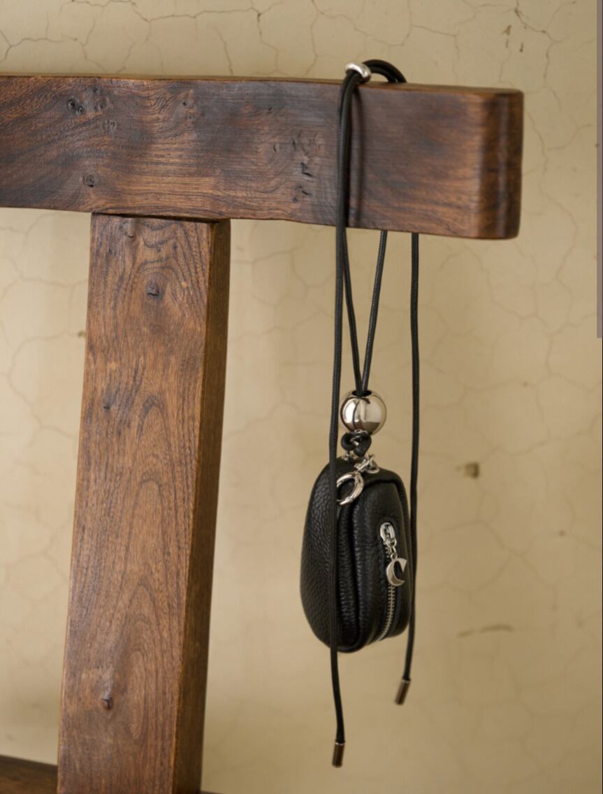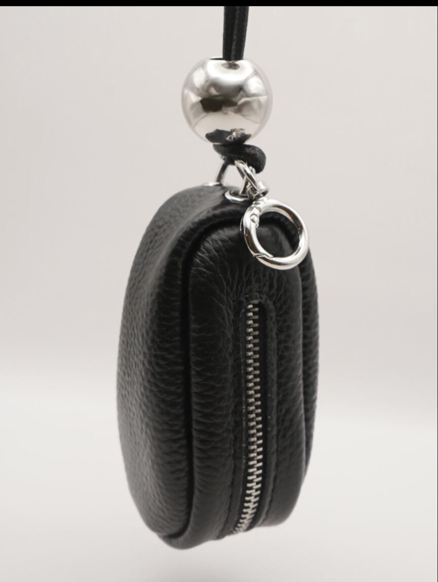 リアルレザー(牛革)のシンプルな縦長ポーチと、シルバーの丸玉付の黒コードの組み合わせが目を惹くポーチ&ネックレス。ポーチには丸カラビナが付いていますので、お手持ちのバッグやパンツのベルトループ部分につけて愉しんでも◎コードネックレス部分は長さ調節が可能なので、前に垂らしたり、ショルダー風にして斜めにつけてたり、短く持って小さいバッグのように使うのもオススメです。ポーチのチャック部分にはCHIGNONのCチャームを施しております。