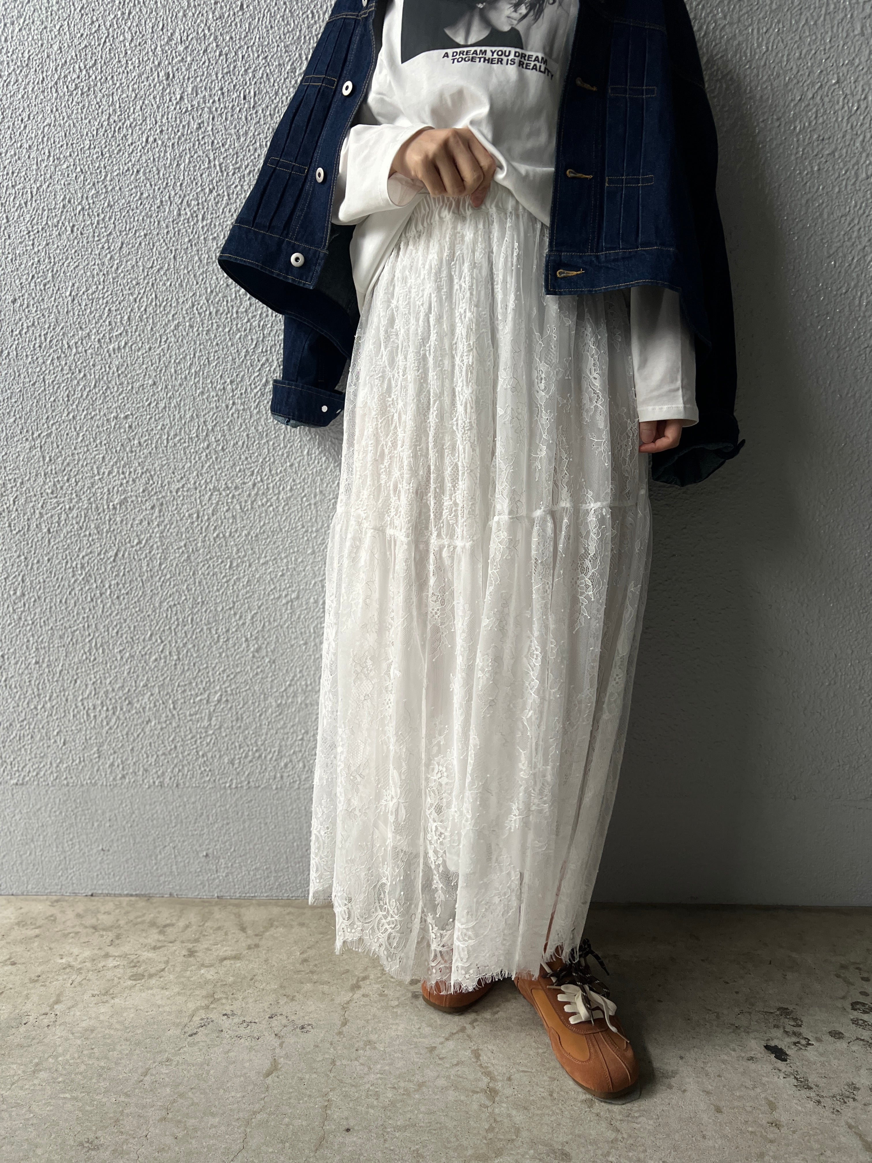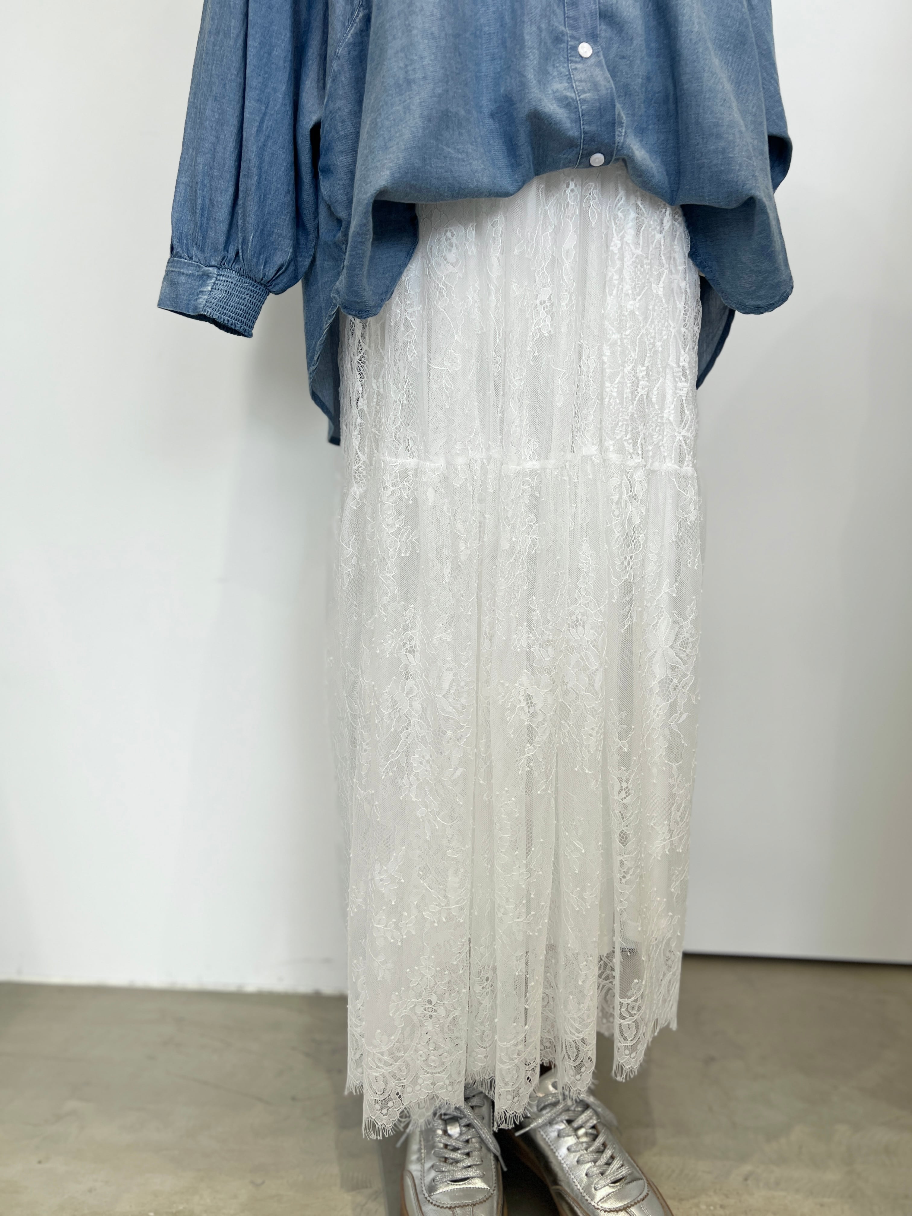 存在感のあるレーススカートは