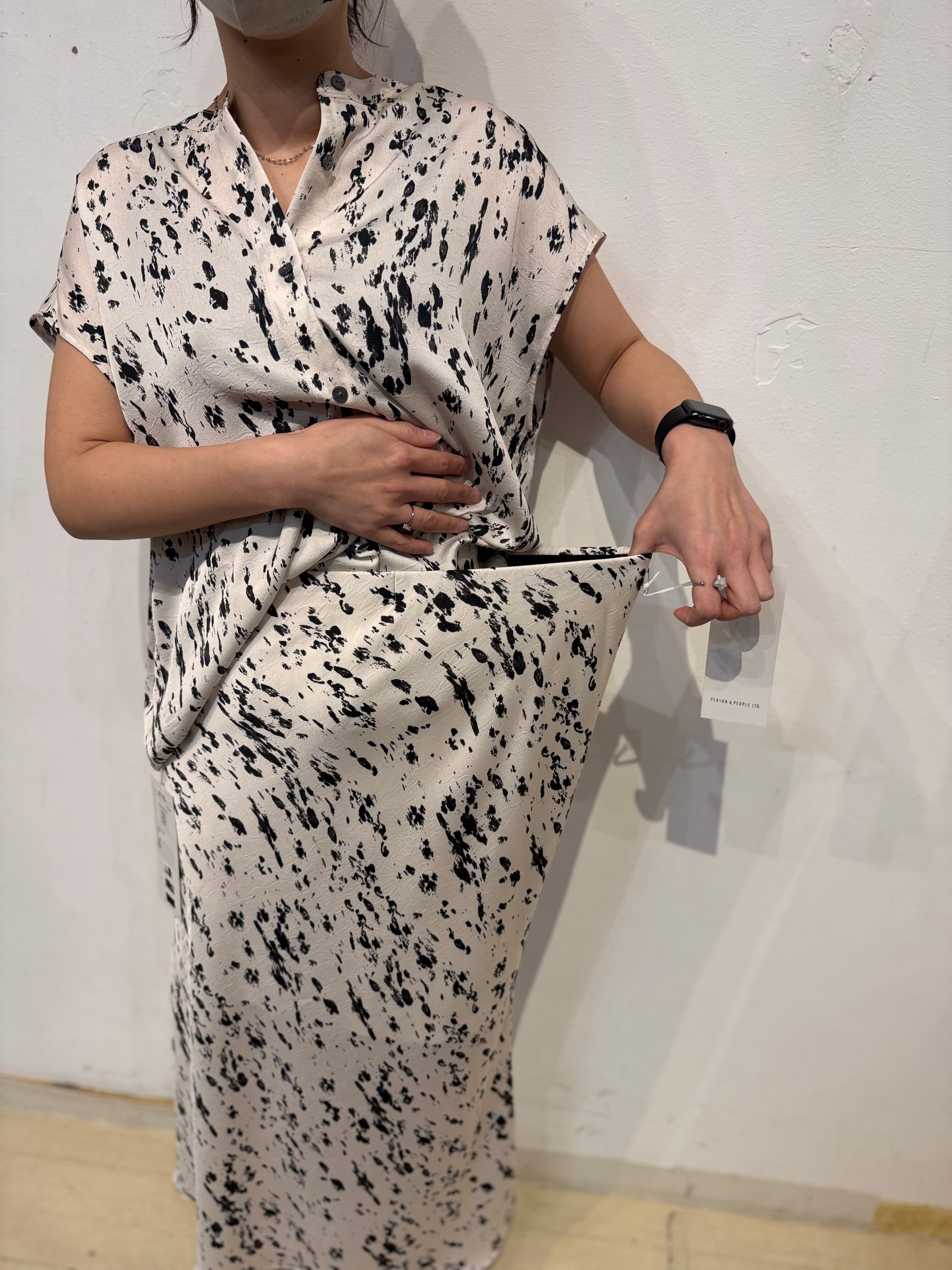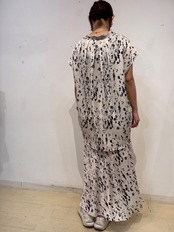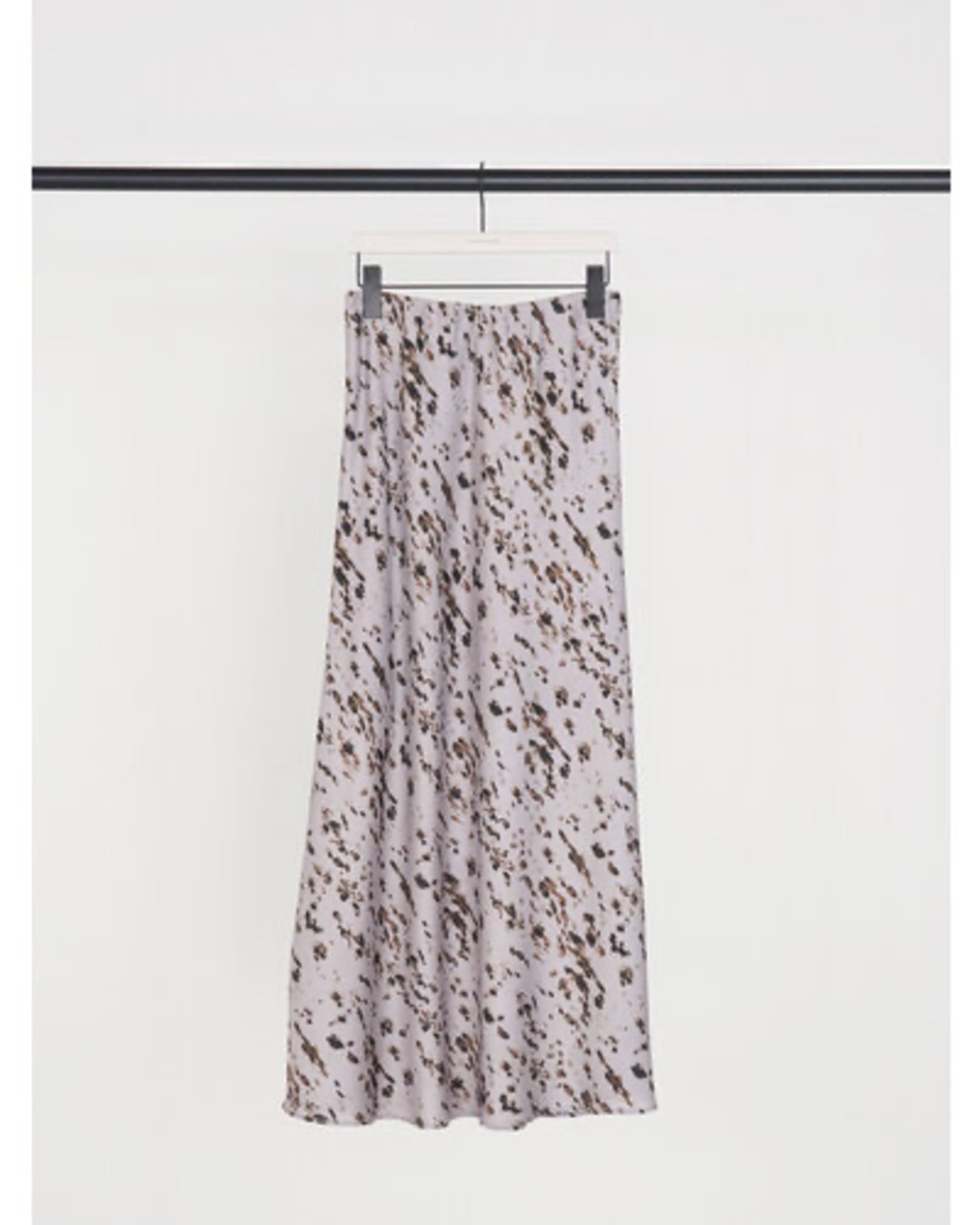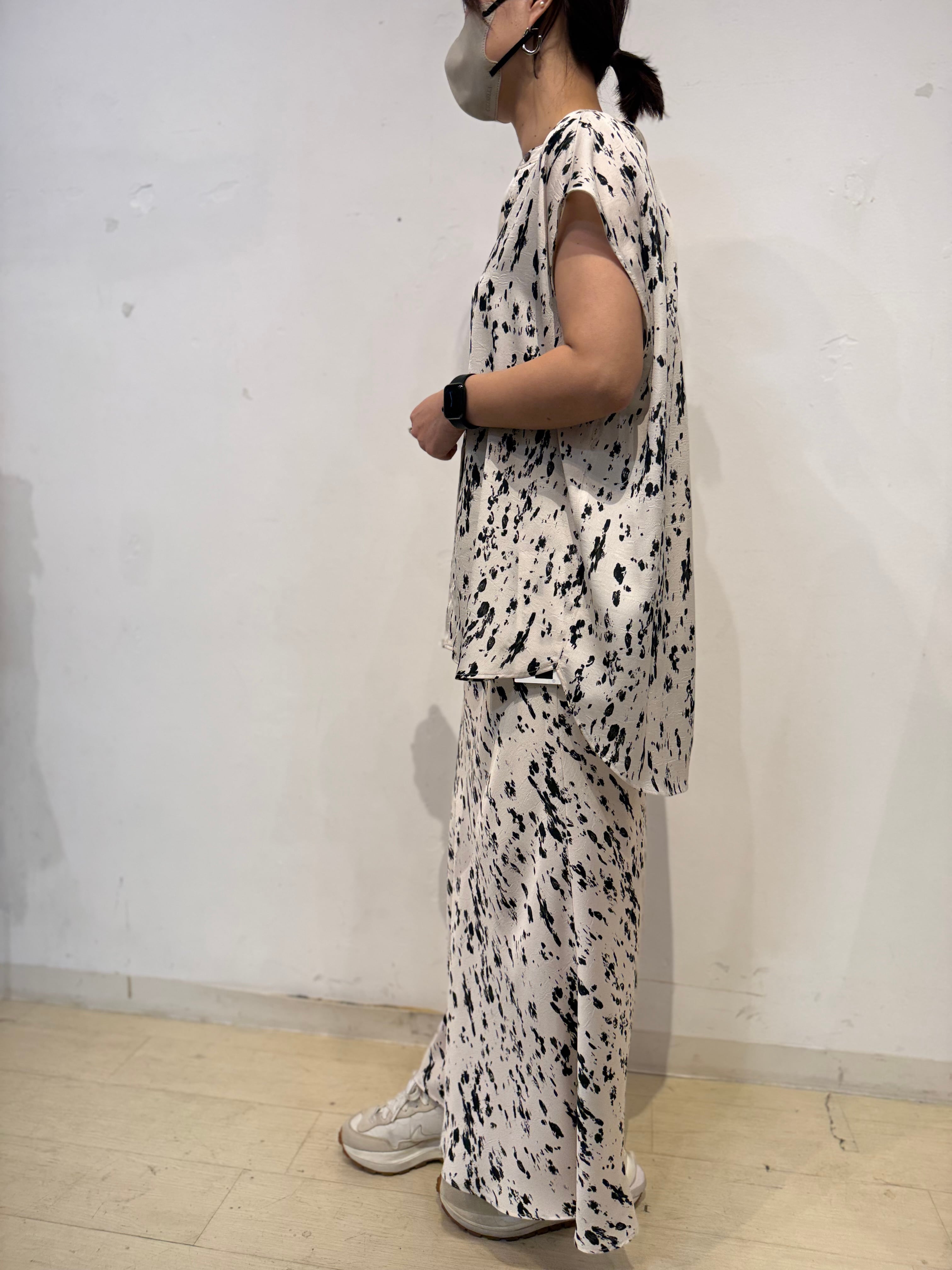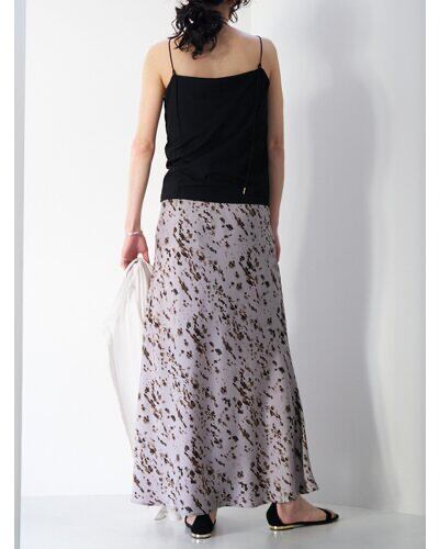 腰まわりはすっきりと、裾にかけて広がるマーメイドシルエットが女性らしいラインを演出。動くたびに揺れる軽やかなドレープ感も魅力です。