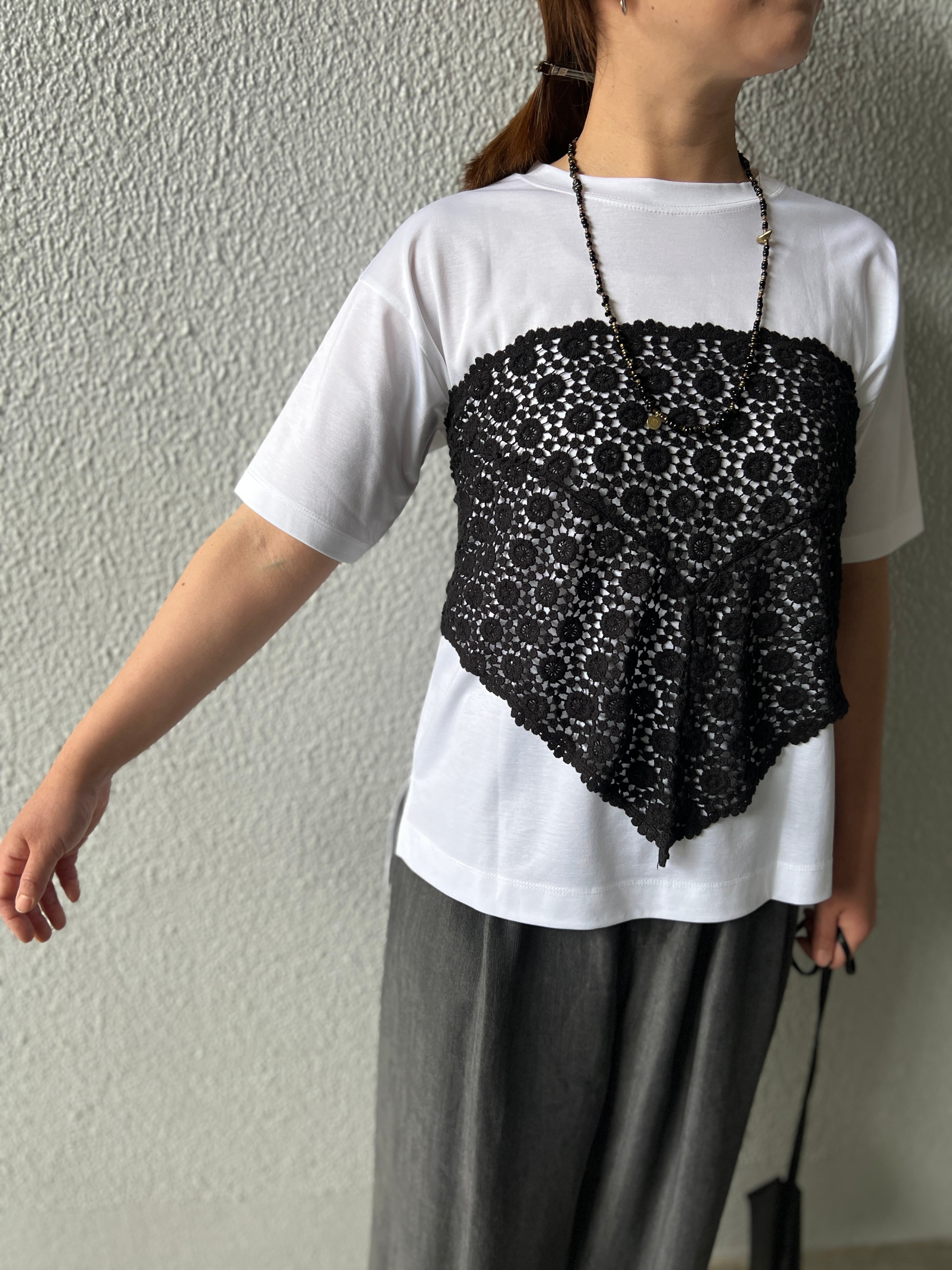 繊細なクロシェ編み風レースが特徴
