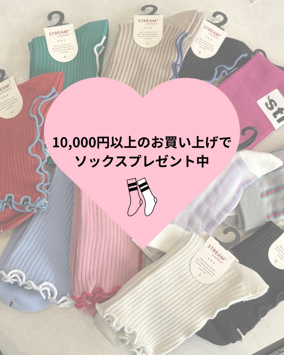 ご注文金額が¥10,000以上のお客様にはこちらで自動的にソックスをプレゼントさせていただきます。お客様に何かしていただく必要はございません。