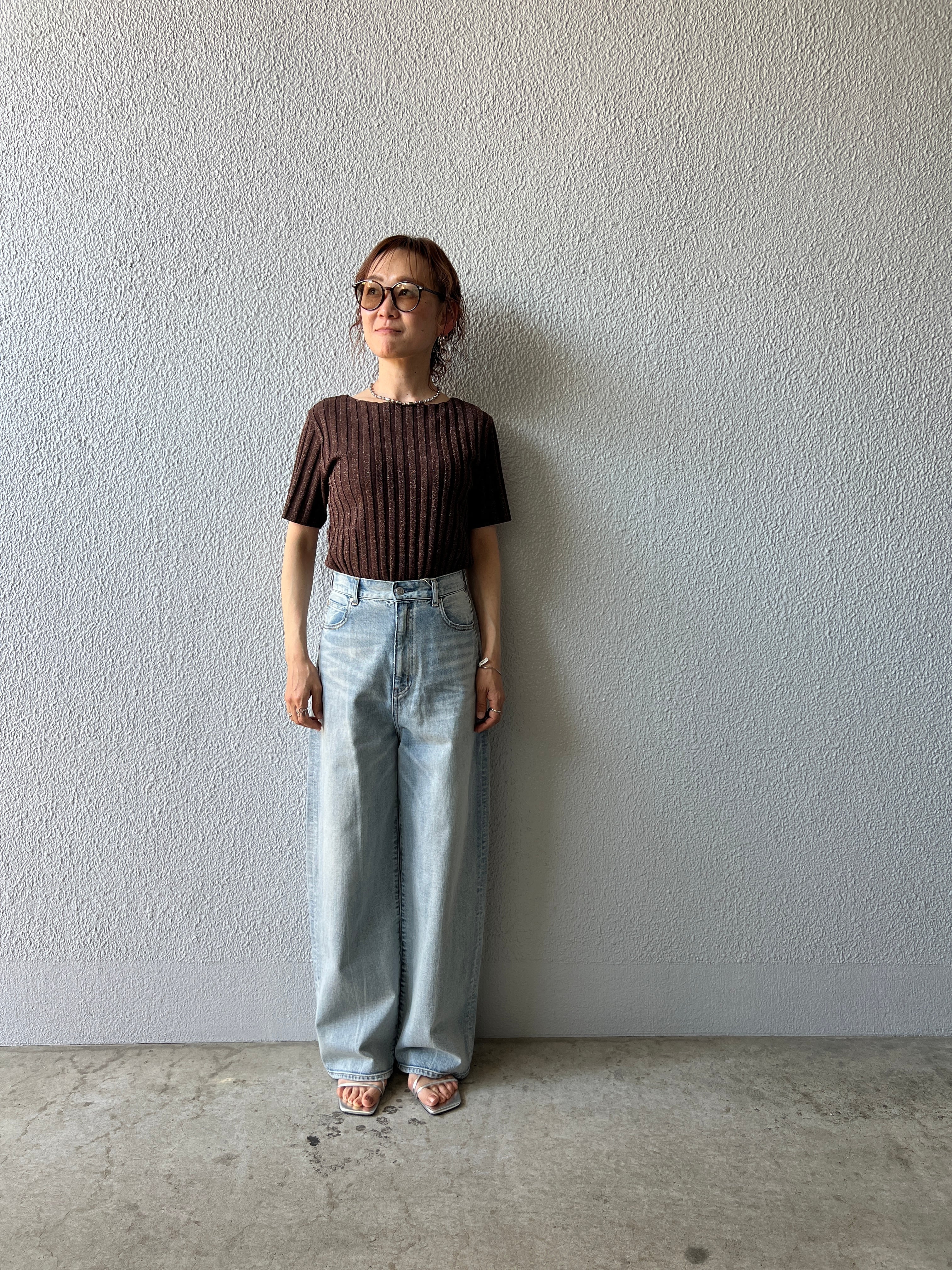 上品なゴールドラメとボートネックが少し大人なリブトップスです^_^