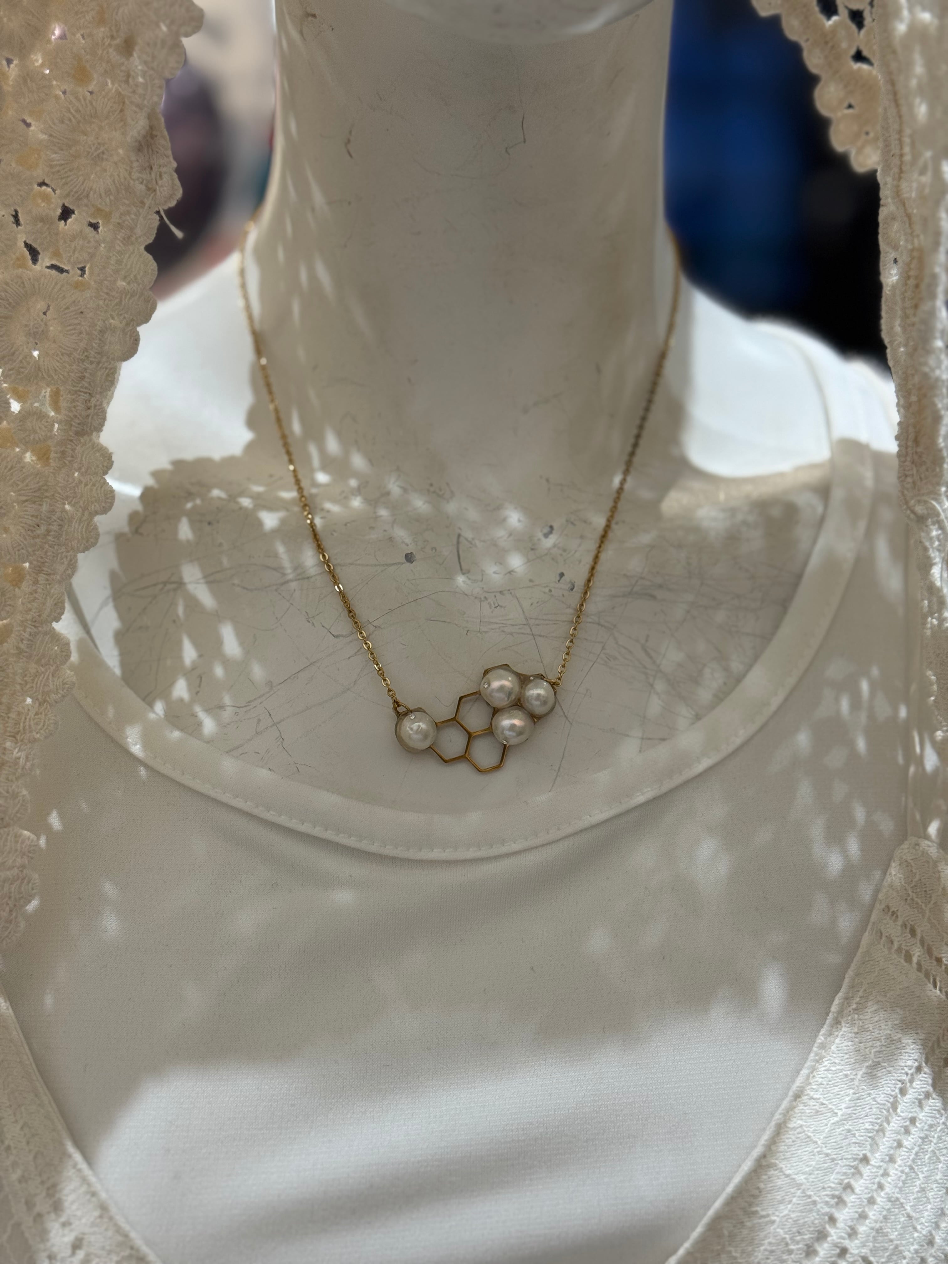 淡水パールをあしらったネックレス。