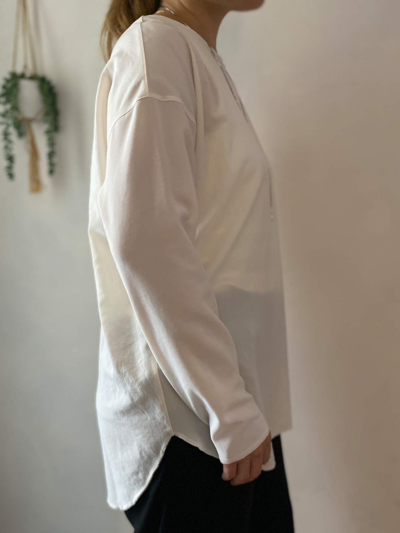 レイヤードにも使いやすいストレッチジョーゼットプルオーバー。