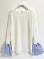 袖口に布帛のフリルをドッキングしたリブカットソーです。