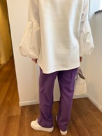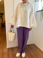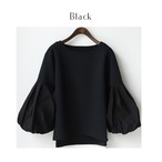 バルーン袖が存在感抜群の異素材ドッキングトップス。