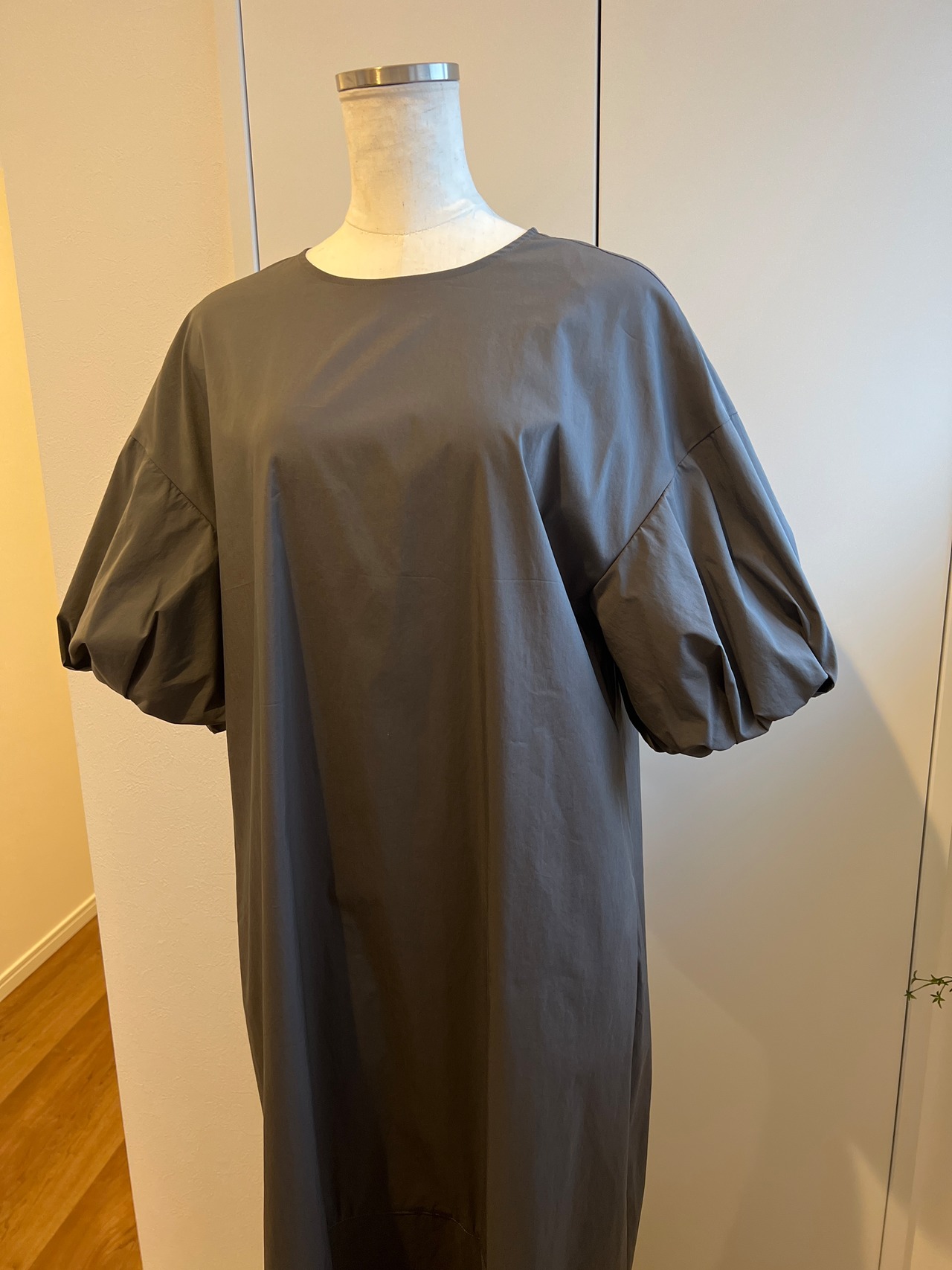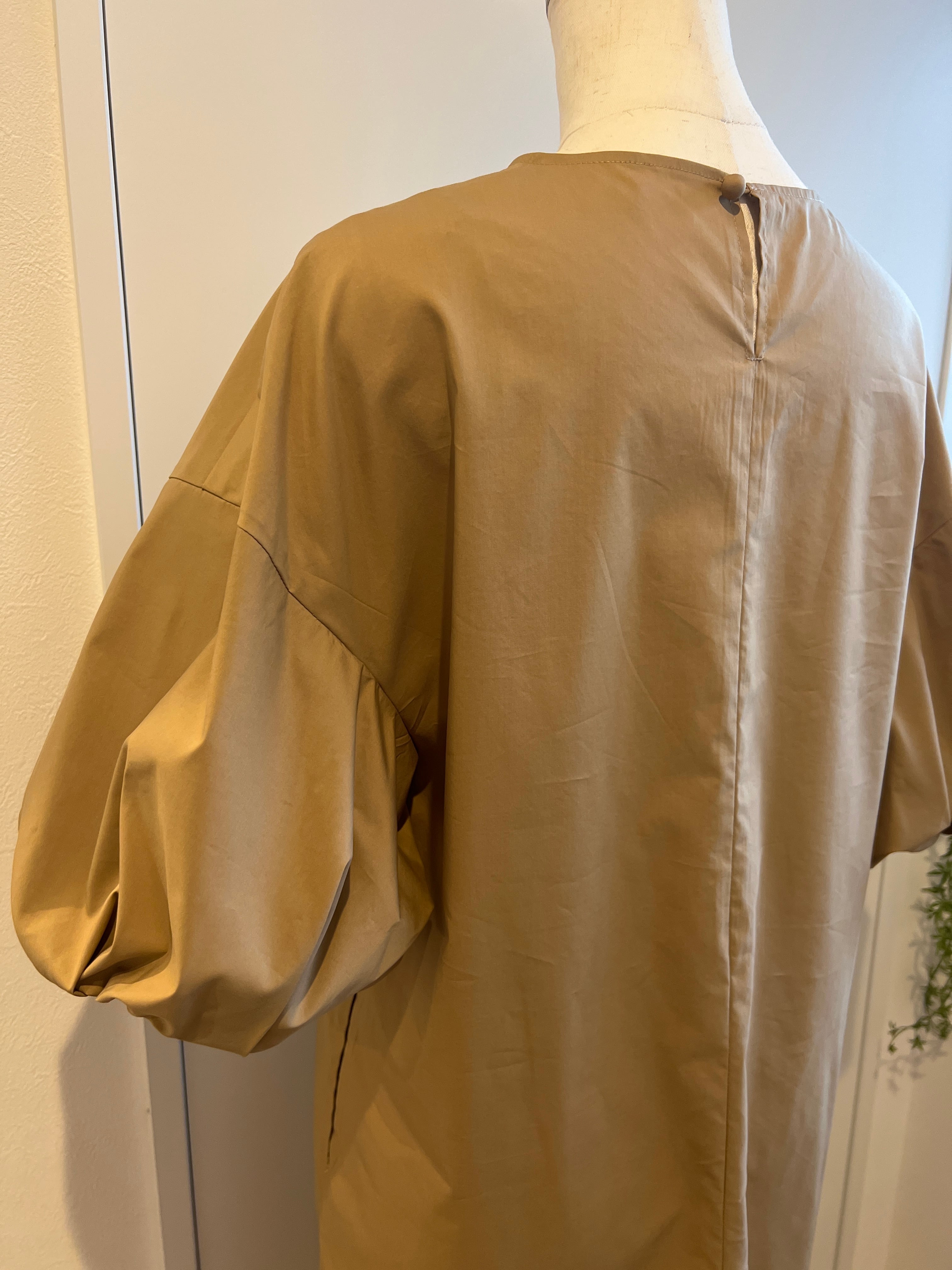 ボリュームスリーブ部分のみ二重になっており、他は裏地もなく透け感もない一枚で完結ワンピ