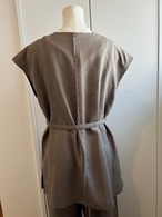 夏の重ね着コーデに大活躍しそうなリネンライクベスト。ベルト付きなのでウエストでメリハリをつけたり、前をあけてみたり。着こなしのバリエーションが楽しめる一枚です。後ろのスクエアな衿ぐりとフリンジが遊び心あるデザインポイントです。