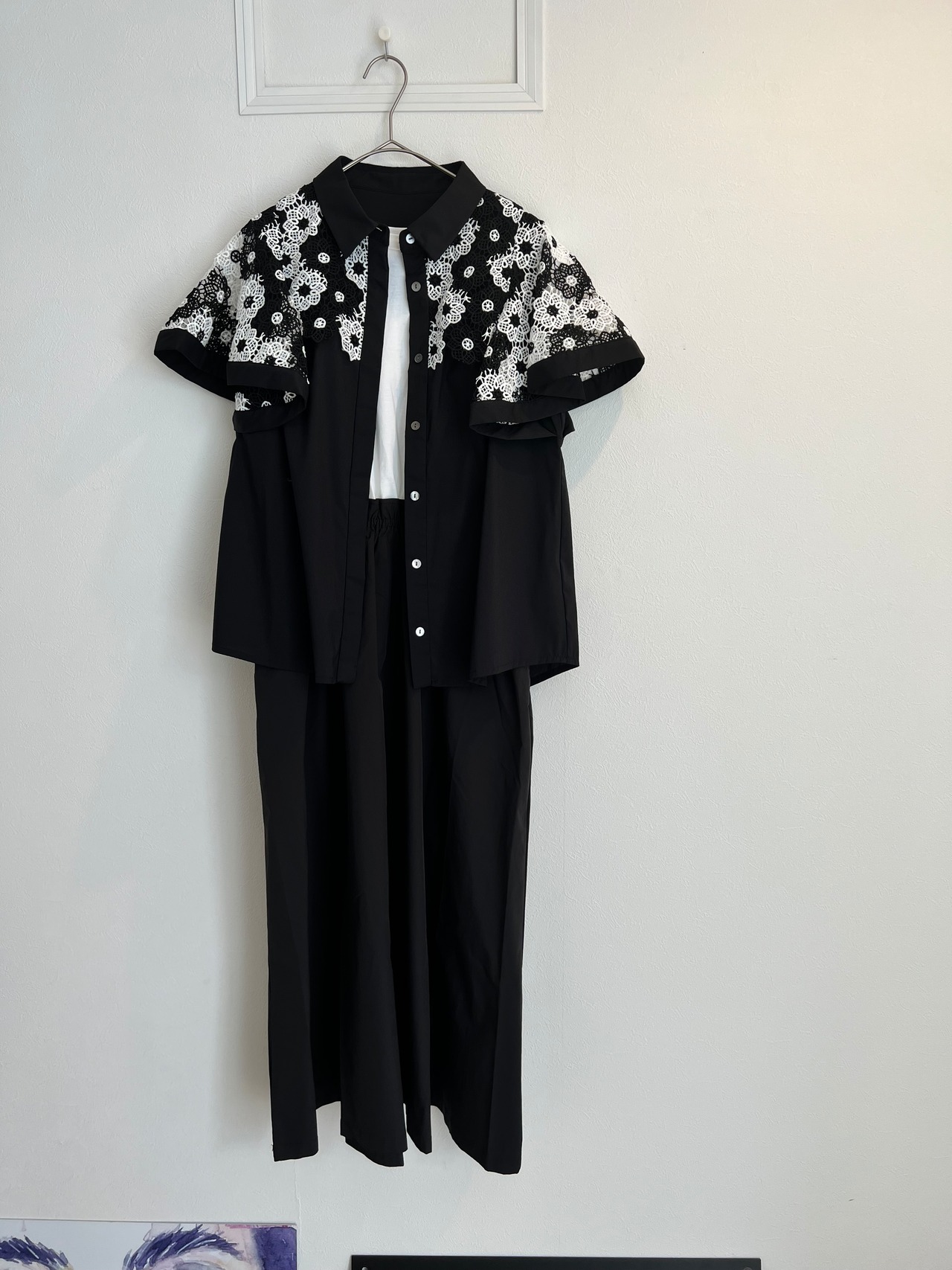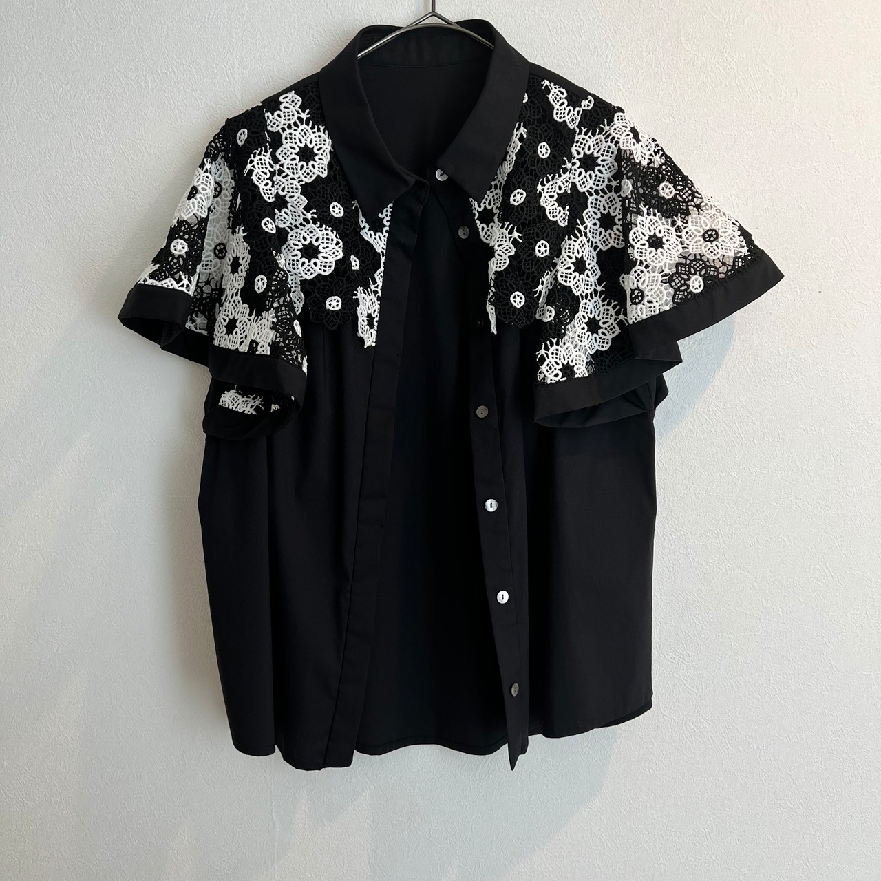 【DOSDIOSAS】フラワーレーススリーブシャツブラウス
