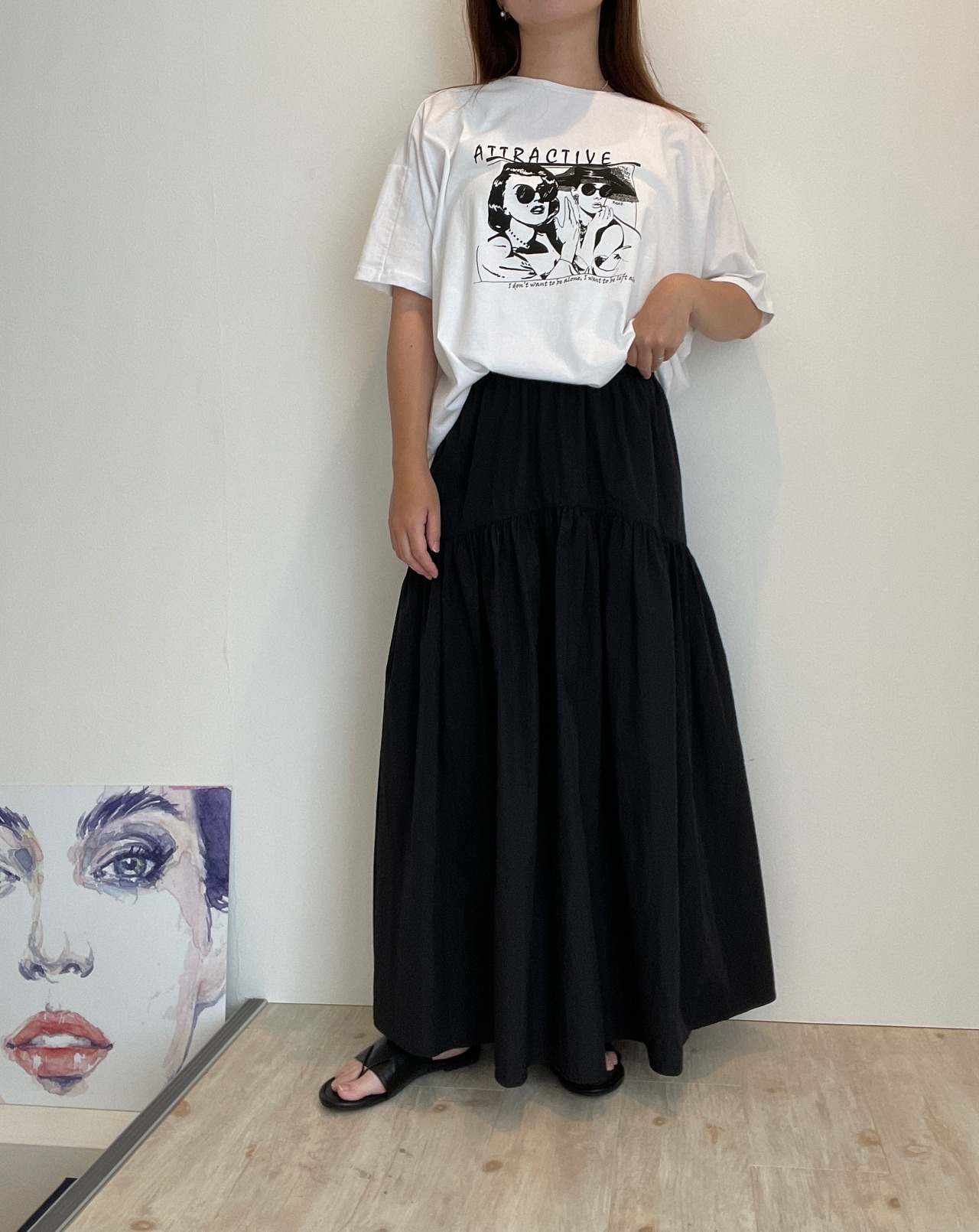 切り替えギャザースカートは、女性らしい可愛らしさを引き立てるスカートです。