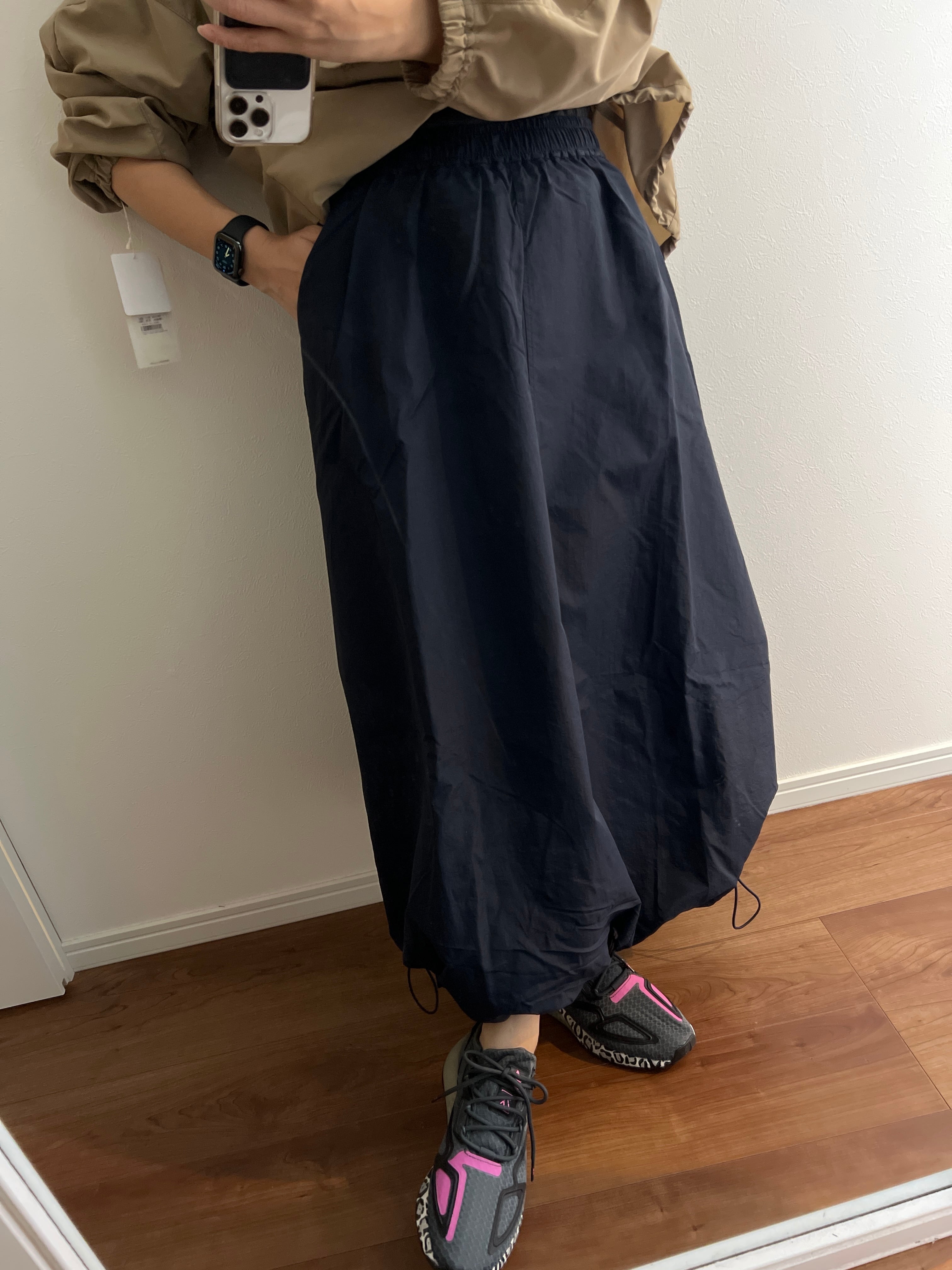 裏地なしでも透け感はなく、程よい厚さの通年履けそうなシャカッとナイロン素材感です^^