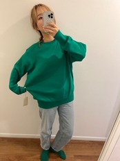 トレーナーよりカジュアルすぎず大人カジュアルな雰囲気に。