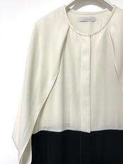 肩から二の腕の気になる部分を隠し、1枚で着用できるデザイン性の高いアイテムです。