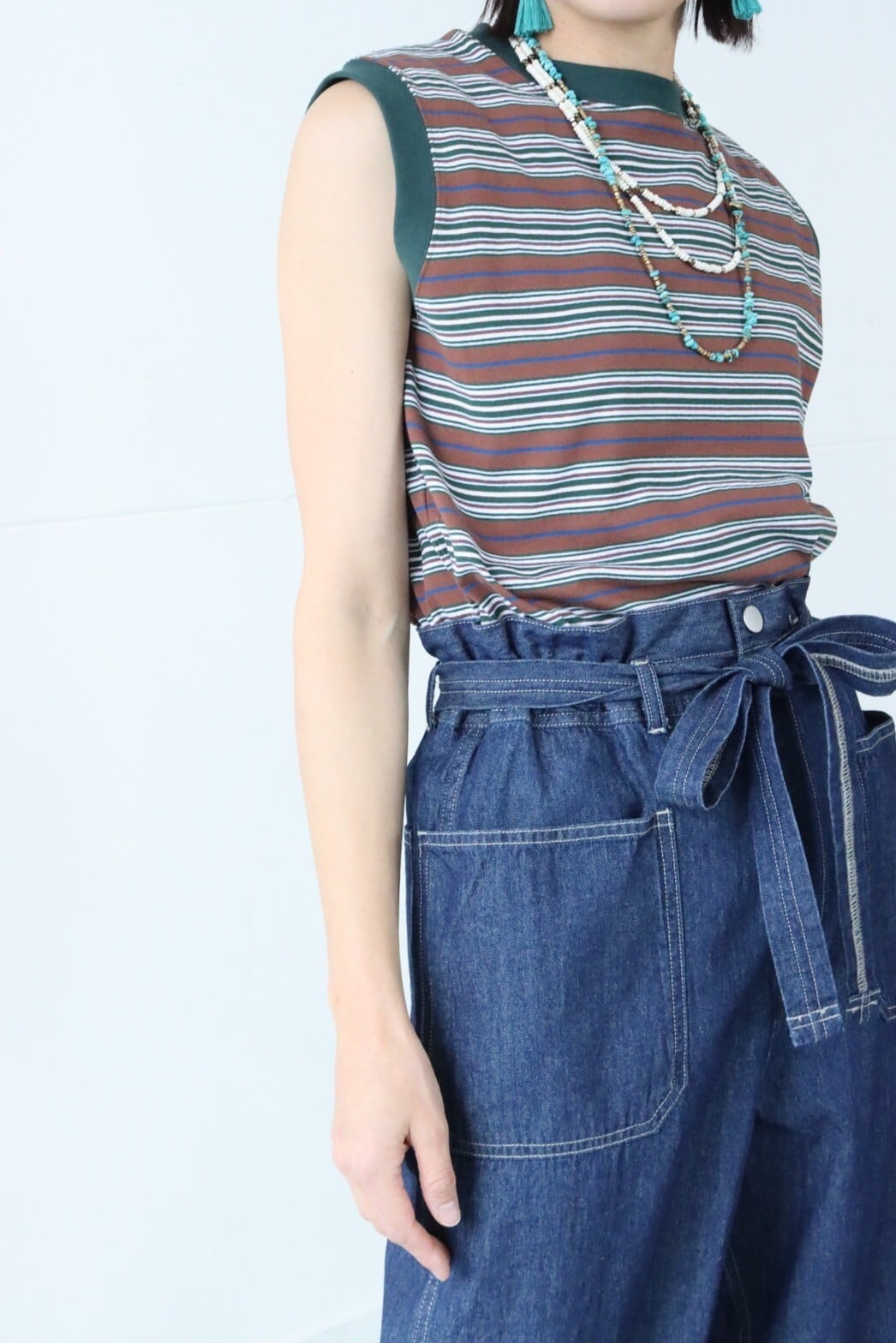 ハイウエストでインして履きたい時は共布リボンでキュッと閉めて。