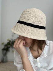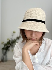 柄編みがシンプルなコーディネートにも映えるデザイン