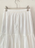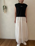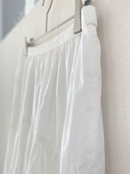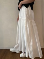 真っ白のスカートはどんなトップスにも合わせやすく、ロング丈でも重くなりません。