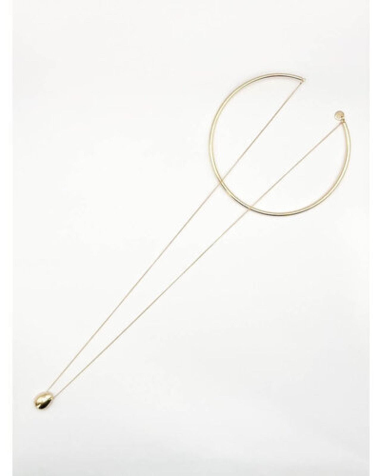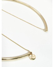 レイヤードタイプのメタルチョーカー×TOP付ネックレスは程良い存在感があるので着けるだけで旬なコーデに仕上げてくれます。