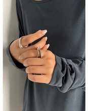ニュアンス感とモード感溢れるデザインフォルムの3本セットリングは単品使いはもちろん、重ね順を変えたりして組み合わせを自在に楽しめるアイテムです。