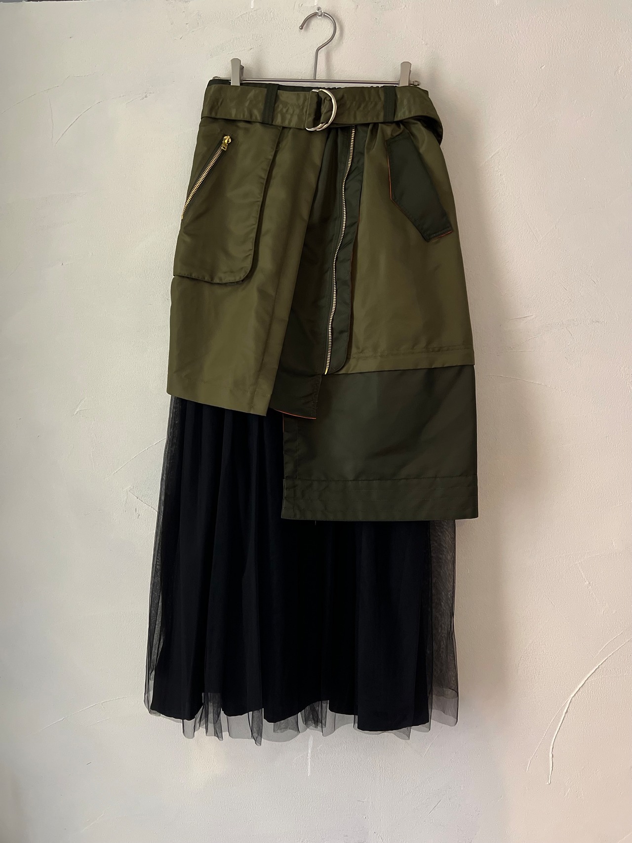 アシメデザインのラップミリタリースカートと、チュールスカートがセットになった商品です