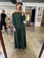 同素材のピンタックワイドパンツとセットアップはもちろん、単品でもロンT感覚で着回しのきく一枚です。