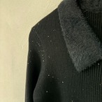襟、袖口にはフェザーヤーンを使用した上品なニット