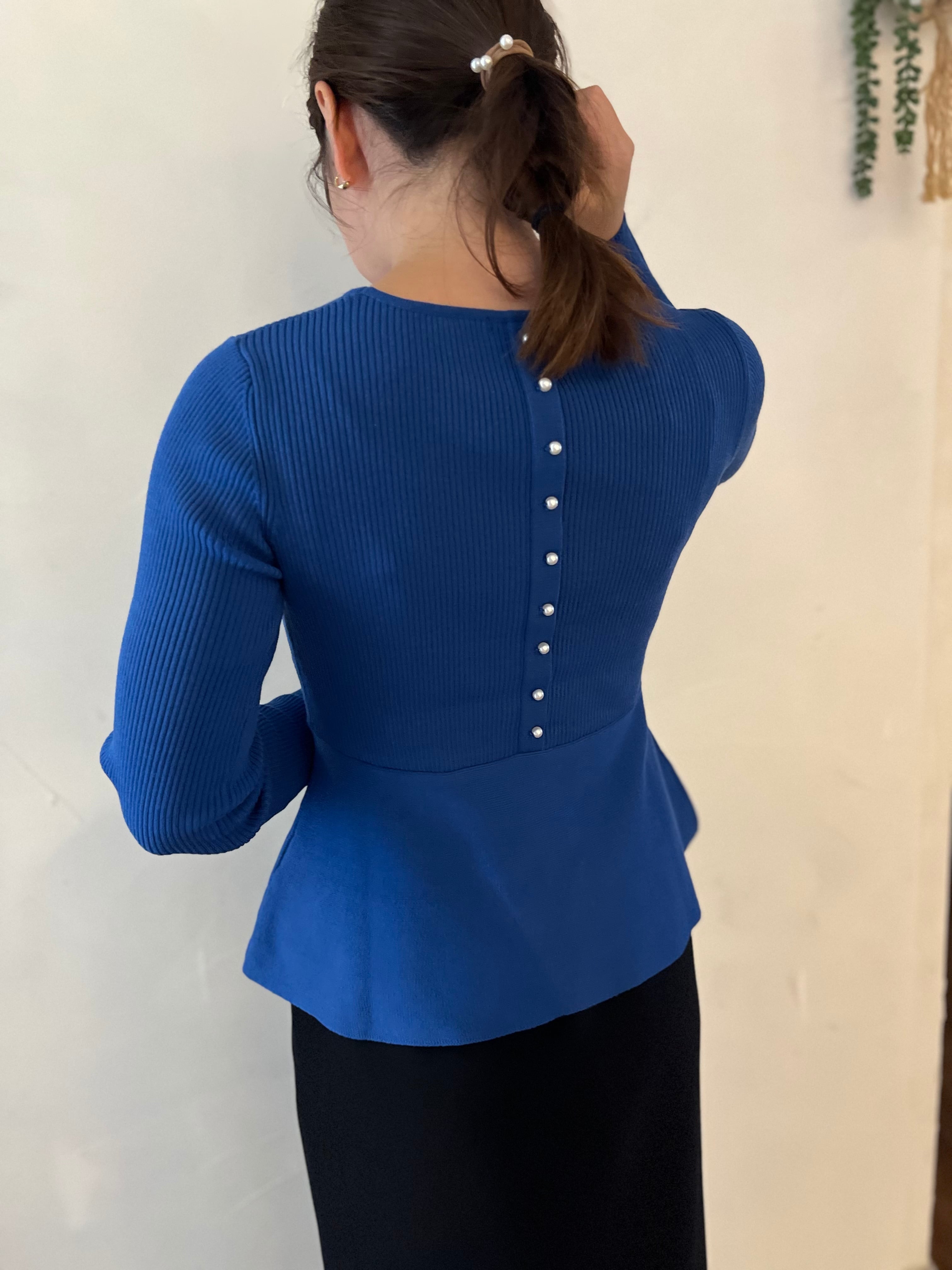 【SELECT】バックパール付ペプラムニット 19-0388