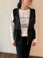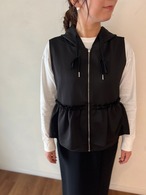 カジュアルなデザインに女性らしさをプラスしたフリル付きフードベスト。