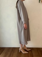 ネックラインにパールの装飾が施され、裾や袖口には繊細なフラワーレース刺繍がデザインされており、シンプルながらもエレガントな印象を与えます。
